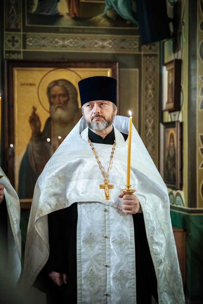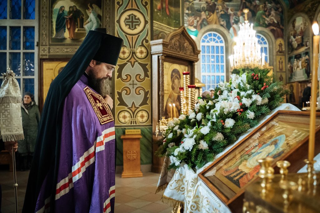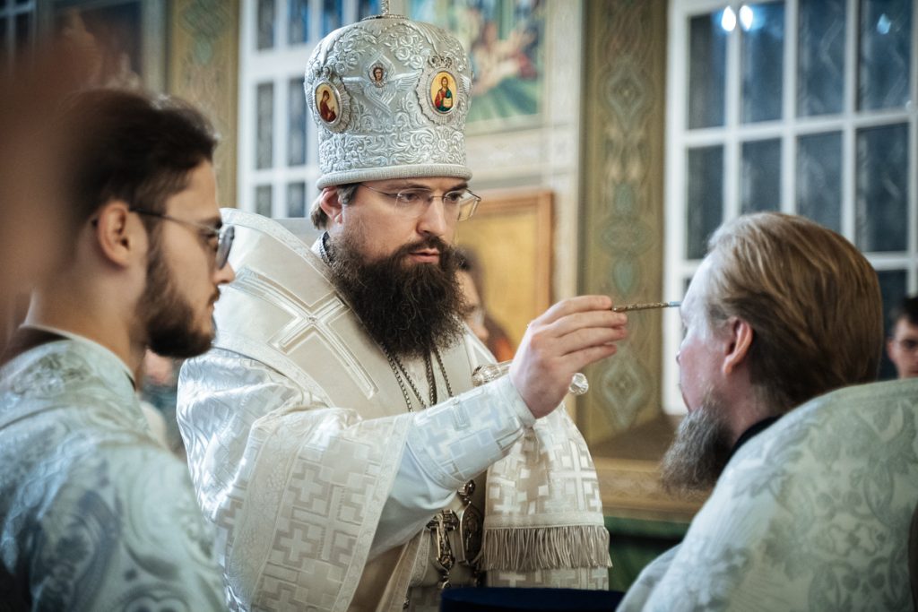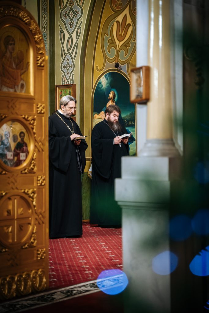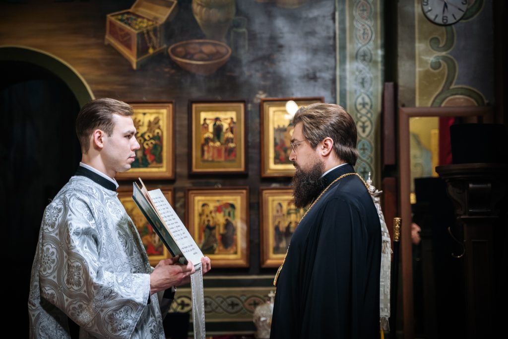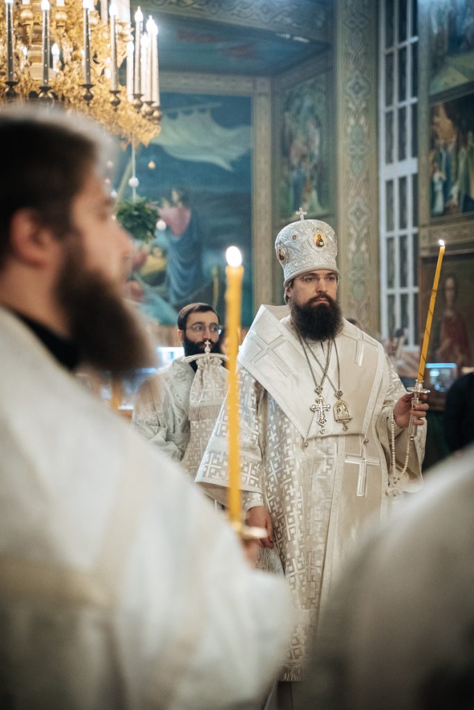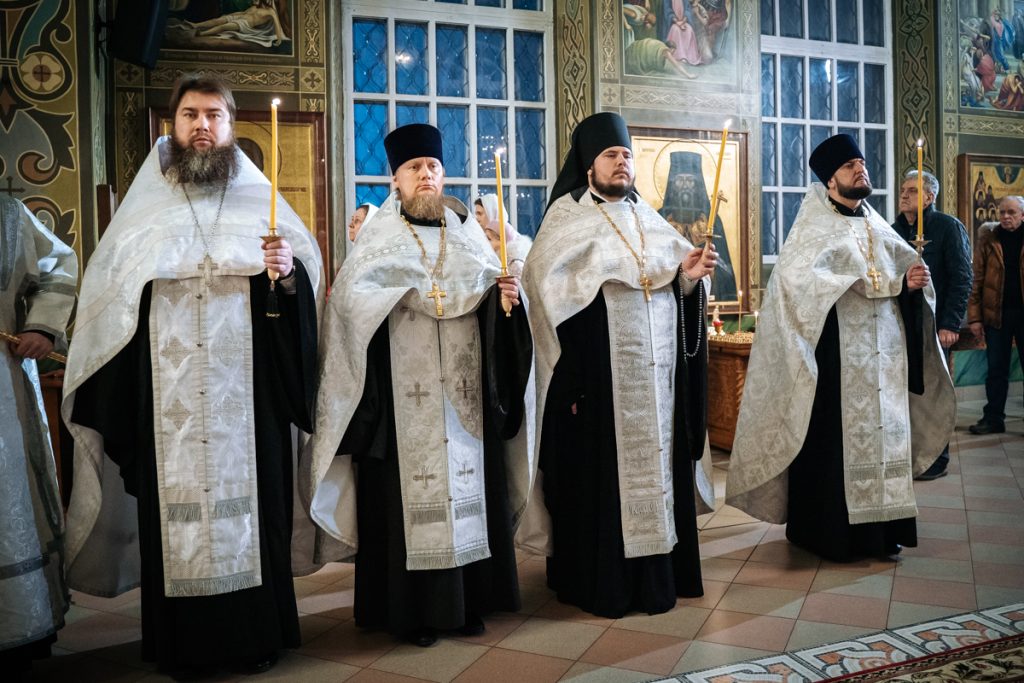 Его Преосвященству сослужили настоятель Преполовенского храма, проректор по воспитательной работе Донской духовной семинарии иерей Андрей Миронов, заведующий отделением магистратуры Донской духовной семинарии протоиерей Григорий Гриднев, заведующий регентско-певческим отделением Донской духовной семинарии иеромонах Аверкий (Шапошников) и клирики храма.