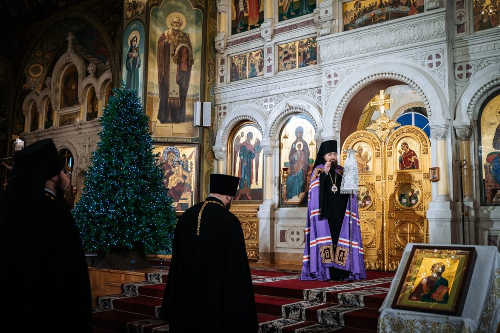 10 января 2026 года, в канун Недели 31-й по Пятидесятнице, по Рождестве Христовом, праведного Иосифа Обручника, Давида царя и Иакова брата Господня, викарий Ростовской епархии епископ Таганрогский Артемий совершил всенощное бдение в храме Преполовения Пятидесятницы при Донской духовной семинарии города Ростова-на-Дону.