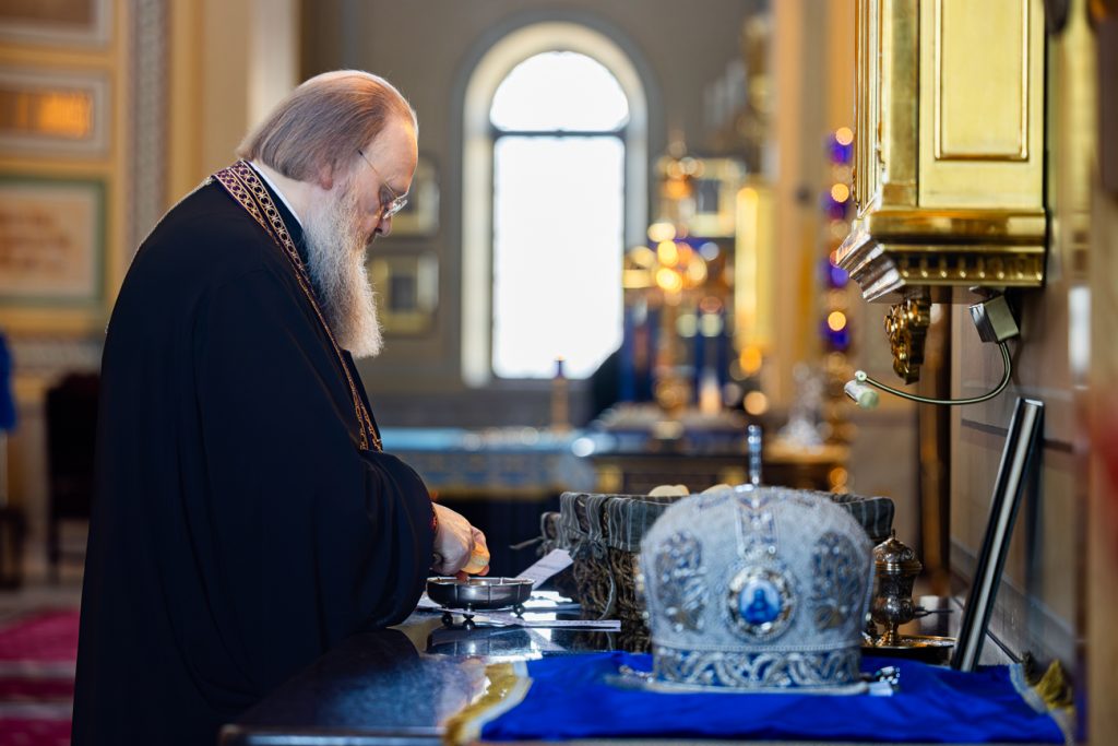 Его Высокопреосвященству сослужили викарий Ростовской епархии епископ Таганрогский Артемий, председатель приходского совета собора протоиерей Александр Брянцев, настоятель собора иерей Димитрий Болотаев, духовник епархии протоиерей Николай Урывский и клирики собора.