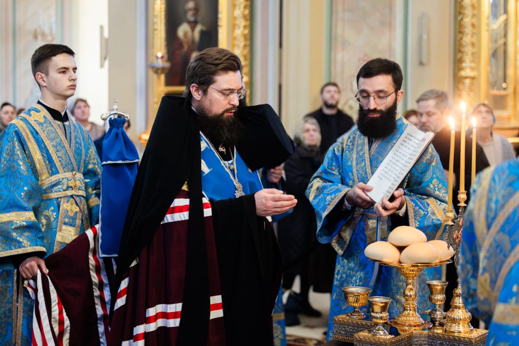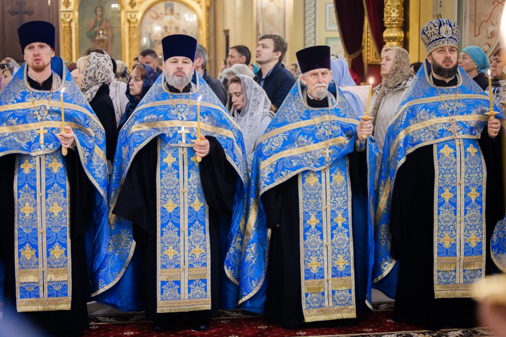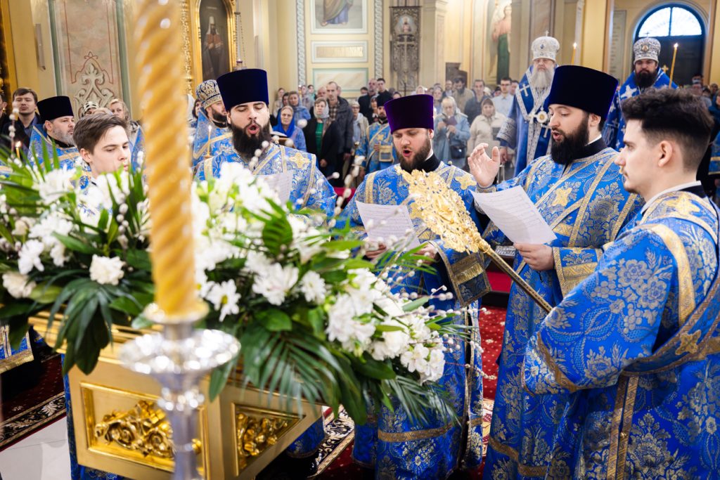 6 апреля 2026 года, в канун Великого Вторника, праздника Благовещения Пресвятой Богородицы и дня преставления святителя Тихона, Патриарха Московского и всея Руси (1925), Глава Донской митрополии митрополит Ростовский и Новочеркасский Меркурий совершил всенощное бдение в Кафедральном соборе Рождества Пресвятой Богородицы города Ростова-на-Дону.