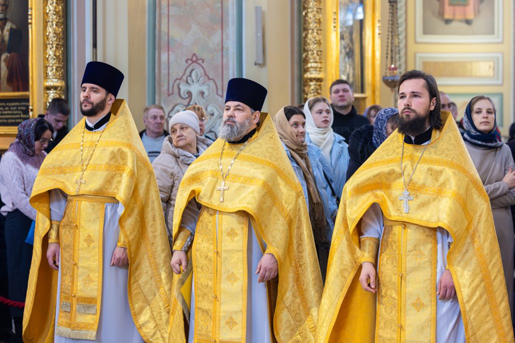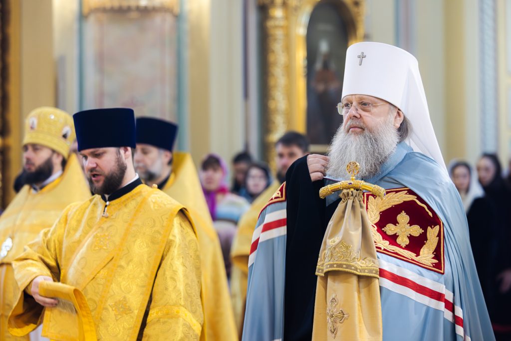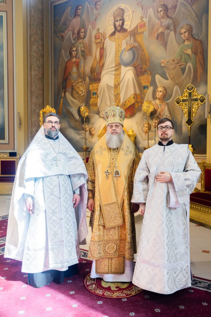 Его Высокопреосвященству сослужили председатель приходского совета собора протоиерей Александр Брянцев, настоятель собора иерей Димитрий Болотаев, клирики храма.