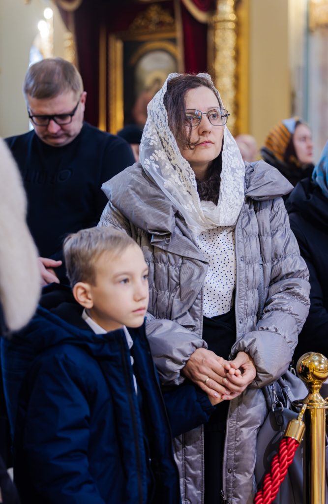 22 февраля 2026 года, в Неделю сыропустную, Воспоминание Адамова изгнания и в день обретения мощей святителя Тихона, патриарха Московского и всея России, Глава Донской митрополии митрополит Ростовский и Новочеркасский Меркурий совершил Божественную литургию в Кафедральном соборе Рождества Пресвятой Богородицы города Ростова-на-Дону.