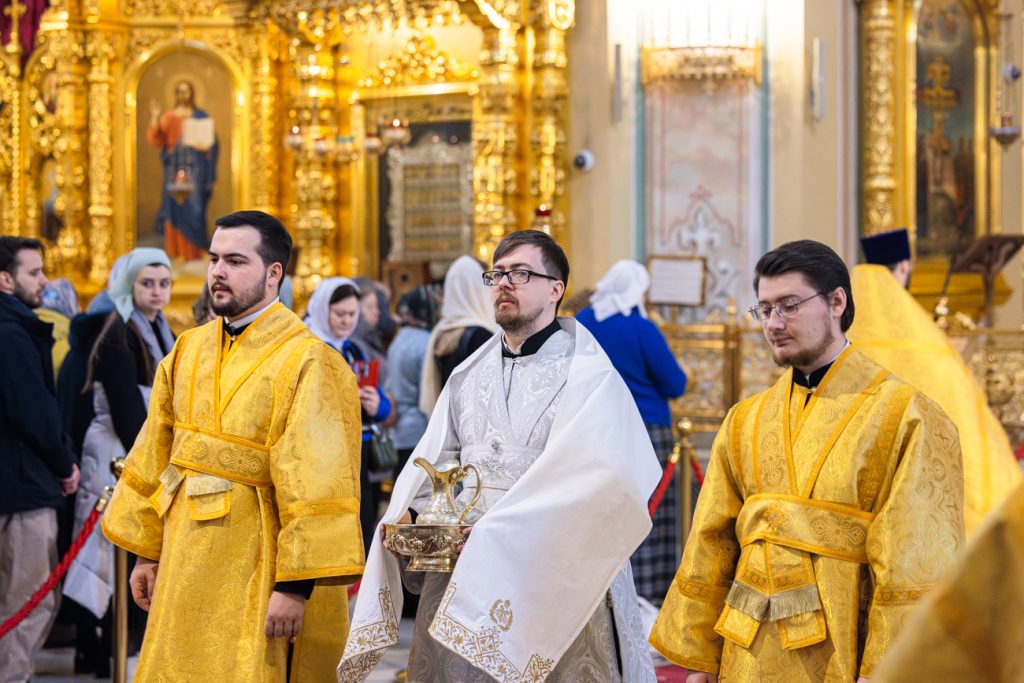 Песнопения богослужения исполнил хор собора под управлением протодиакона Владимира Зубрицкого. Проповедь перед Святым Причастием произнес клирик собора диакон Димитрий Коляда.