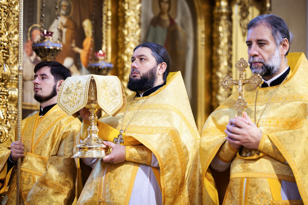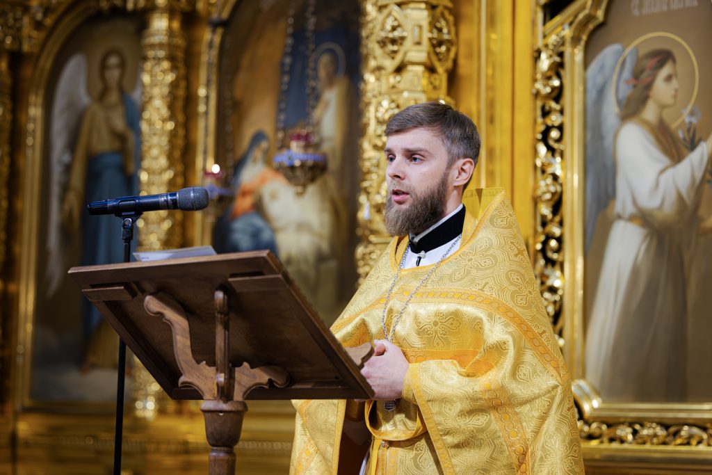 Песнопения богослужения исполнил хор собора под управлением протодиакона Владимира Зубрицкого. Проповедь перед Причастием произнес иерей Сергий Грибов.