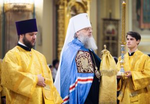 Его Высокопреосвященству сослужили председатель приходского совета собора протоиерей Александр Брянцев, настоятель собора иерей Димитрий Болотаев, личный секретарь Главы Донской митрополии иерей Сергий Грибов, клирики собора.