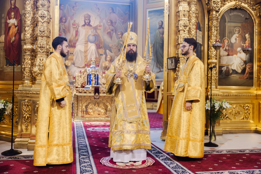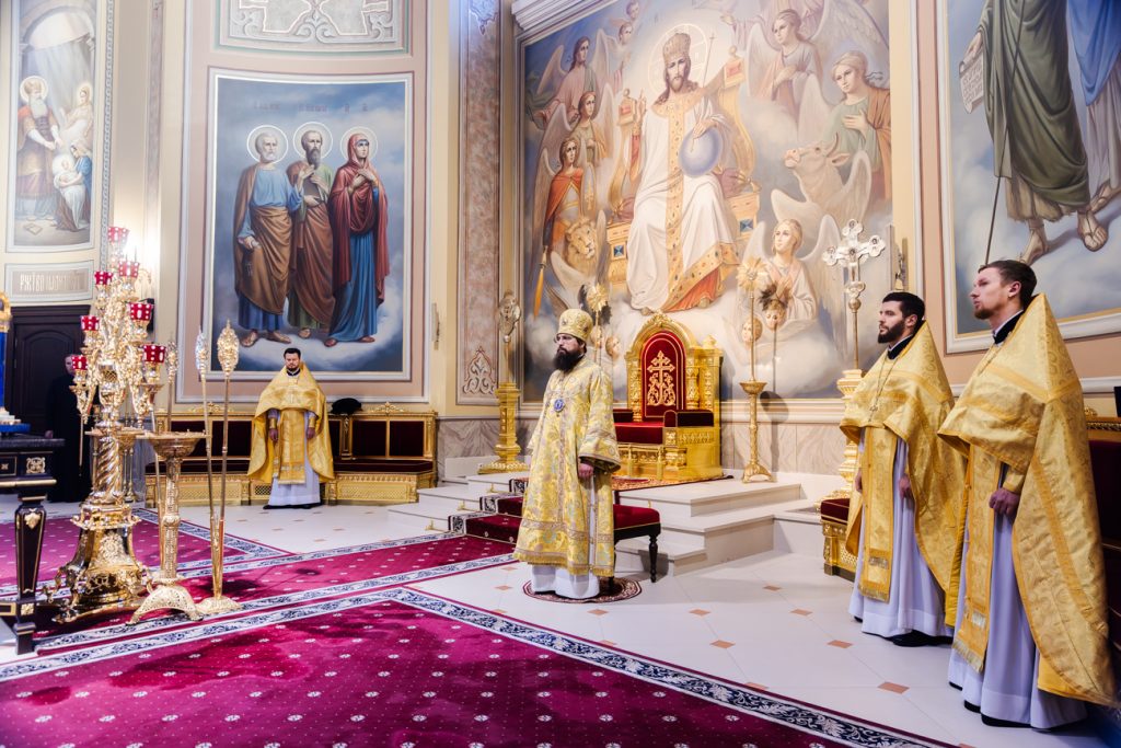 Его Преосвященству сослужили настоятель собора иерей Димитрий Болотаев, клирик собора иеромонах Рафаил (Митрофанов), клирики собора.