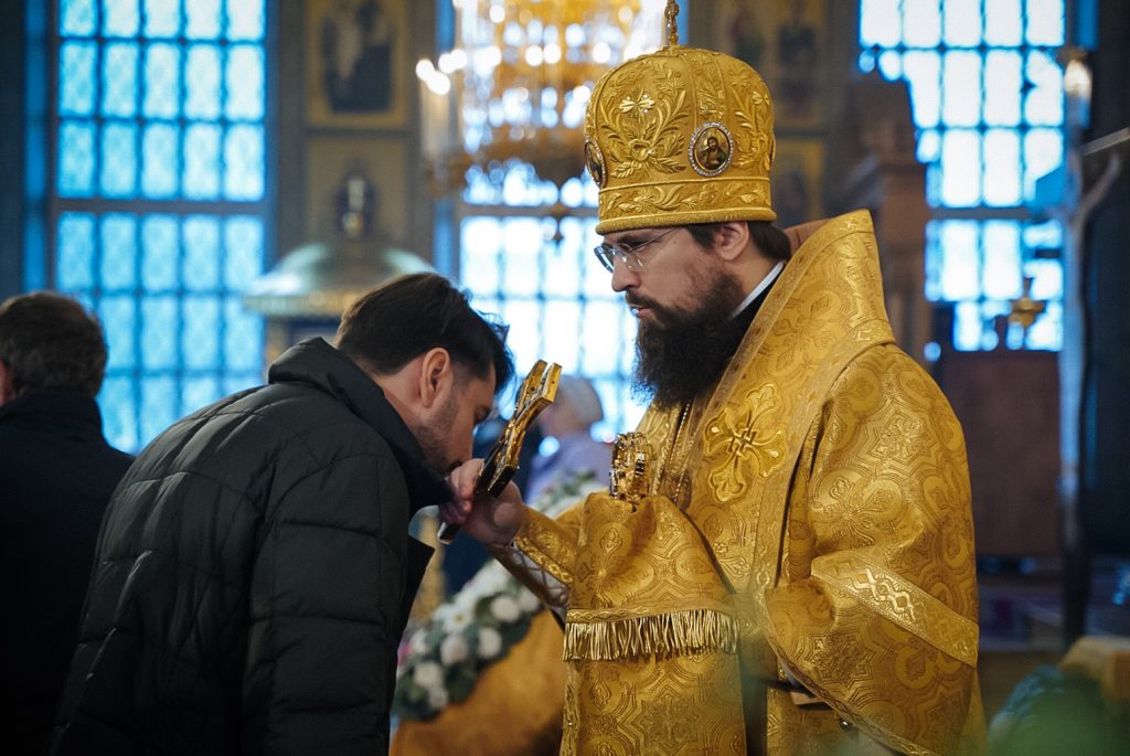 По окончании богослужения Его Преосвященство обратился к молящимся с архипастырским словом, передав благословение митрополита Ростовского и Новочеркасского Меркурия.