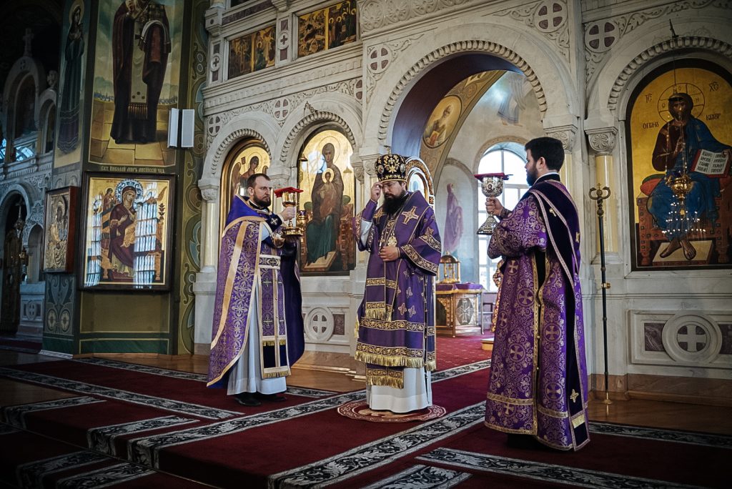 Его Преосвященству сослужили настоятель Преполовенского храма, проректор по воспитательной работе Донской духовной семинарии иерей Андрей Миронов, заведующий отделением магистратуры Донской духовной семинарии протоиерей Григорий Гриднев и клирики храма.