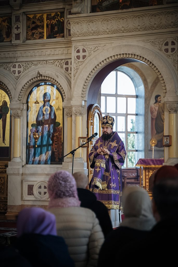 По окончании богослужения Его Преосвященство обратился к молящимся с архипастырским словом, передав благословение митрополита Ростовского и Новочеркасского Меркурия.