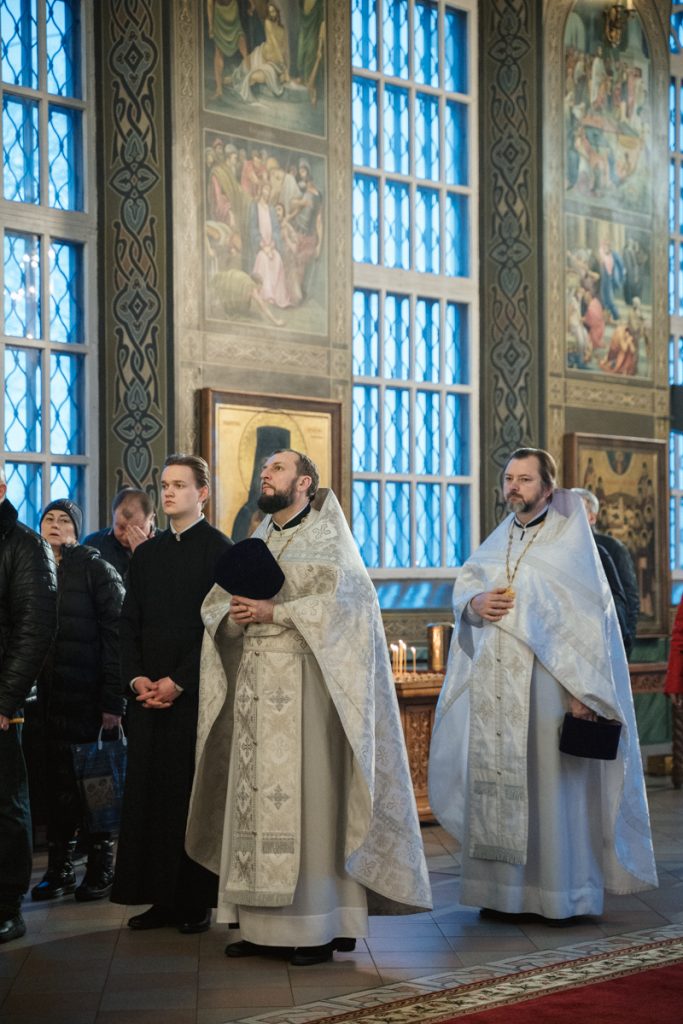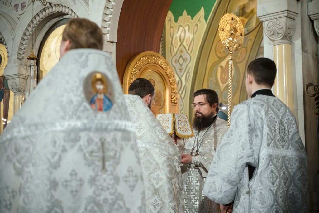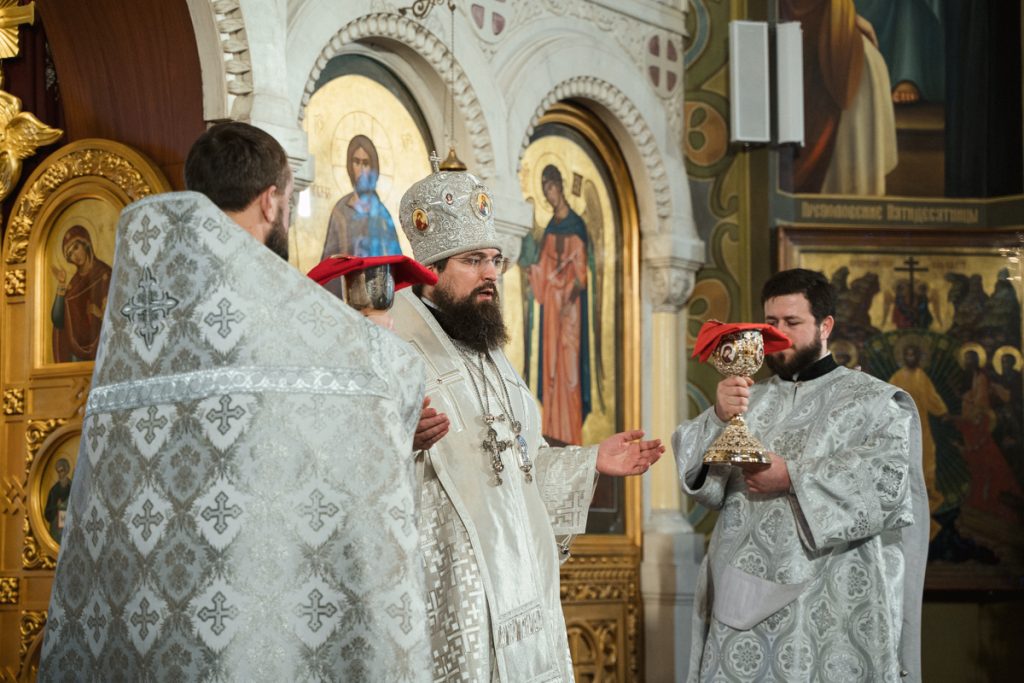 Его Преосвященству сослужили настоятель Преполовенского храма, проректор по воспитательной работе Донской духовной семинарии иерей Андрей Миронов и клирики храма.