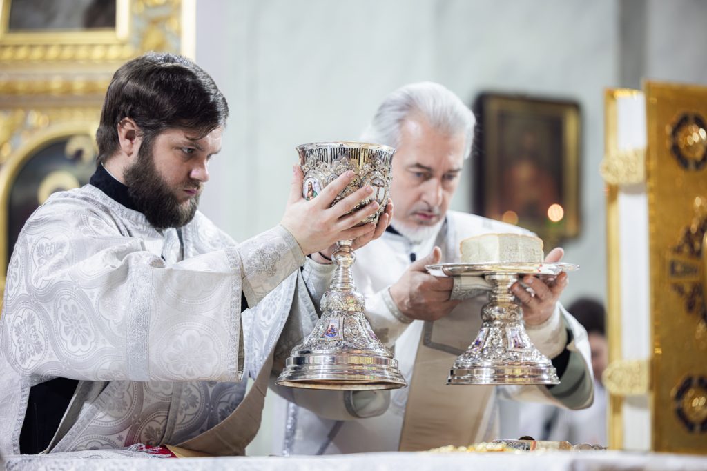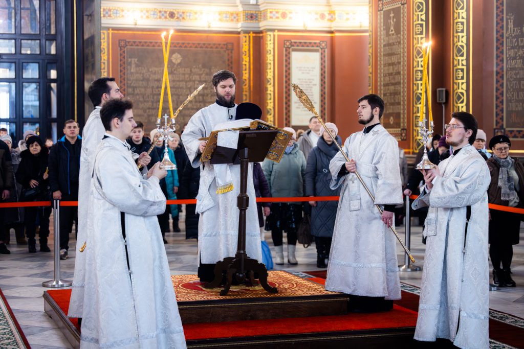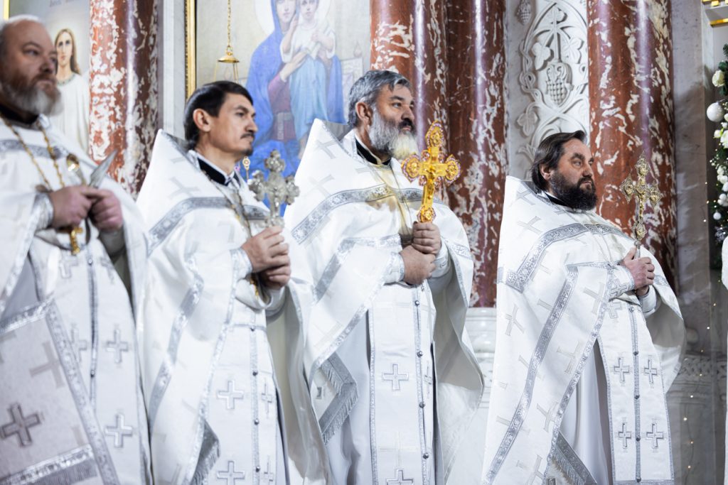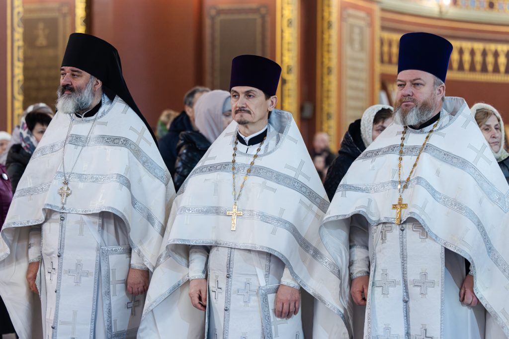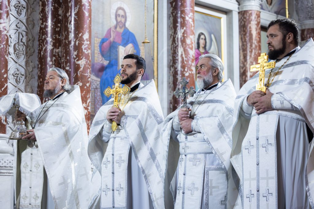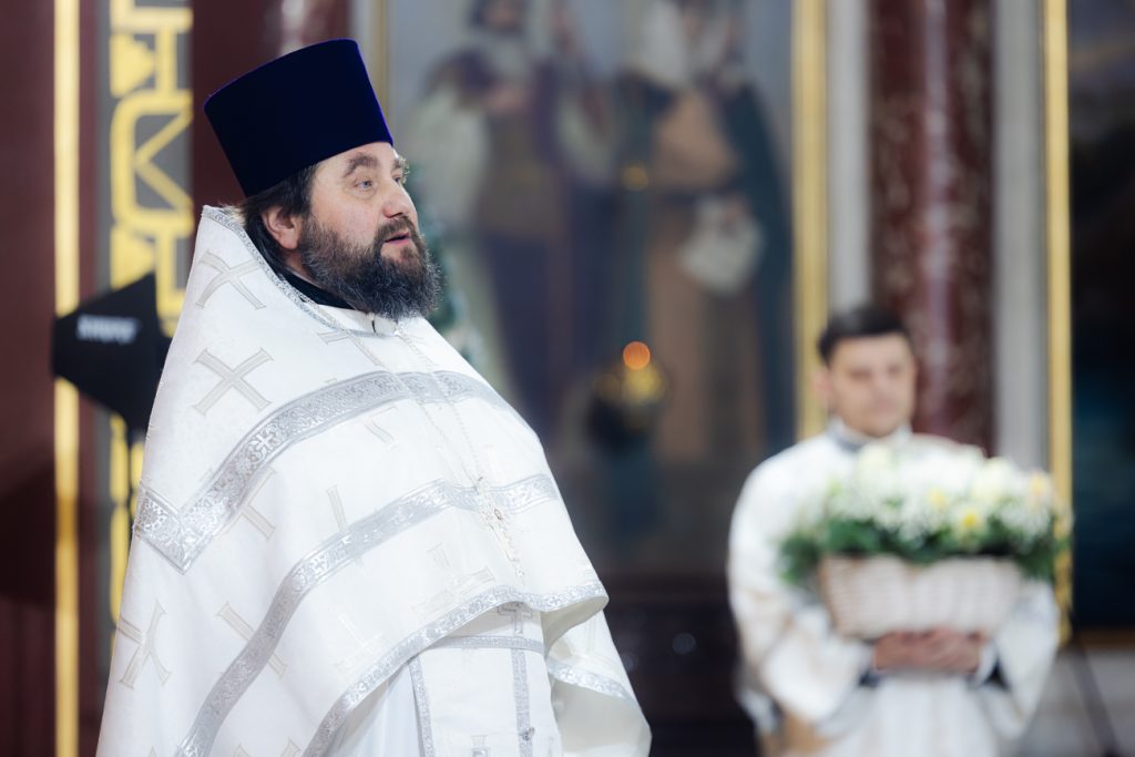 Песнопения Божественной литургии исполнил хор собора под управлением регента Галины Москаленко. Проповедь перед Святым Причастием произнес настоятель Александро-Невского храма города Новочеркасска иерей Евгений Фомин.