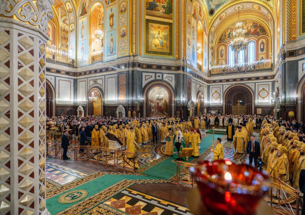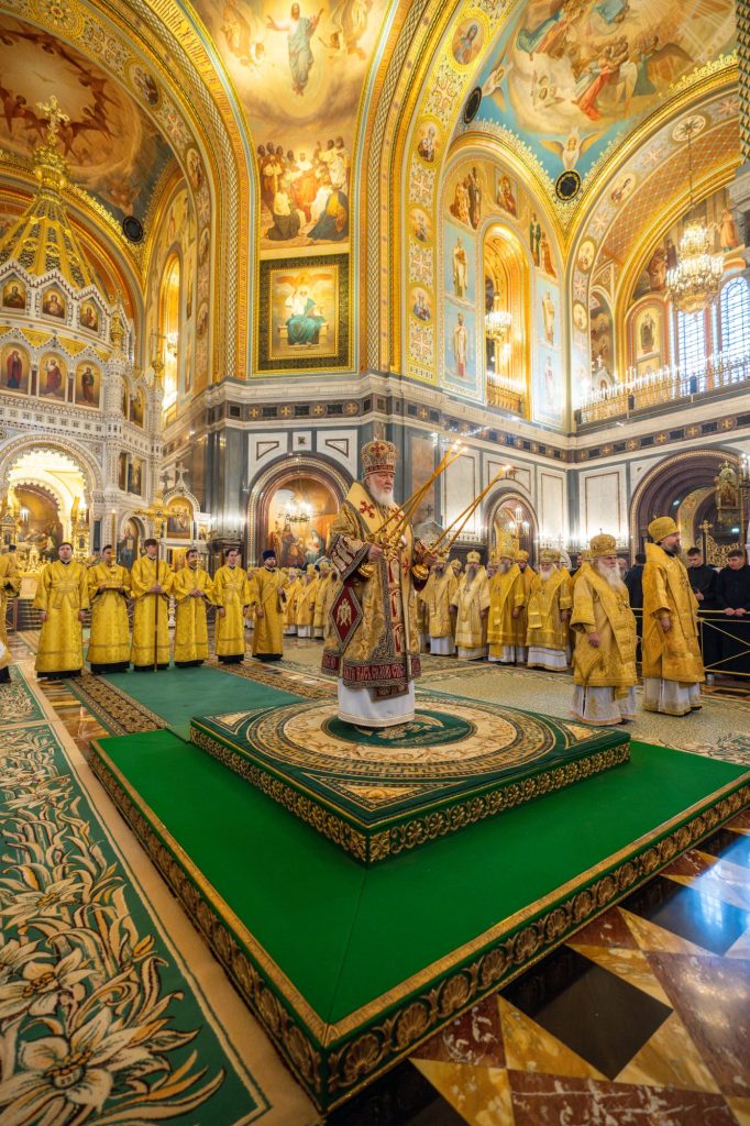 На сугубой ектении были вознесены особые прошения, Предстоятель Русской Церкви прочитал молитву о Святой Руси.