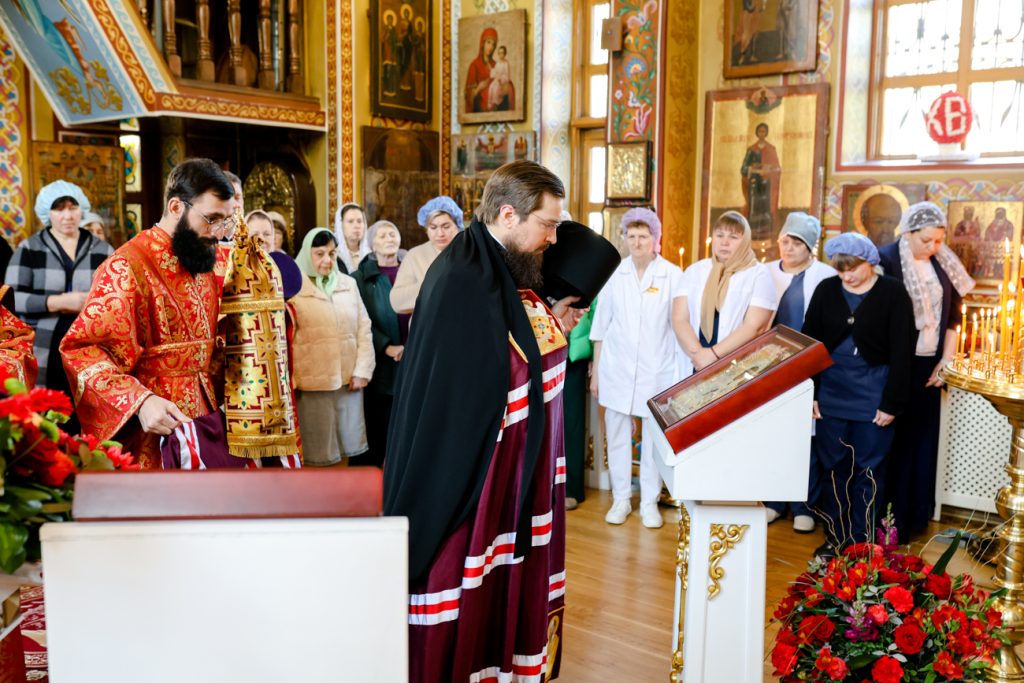 Прибывшего в храм архипастыря встречали заместитель главного врача по хирургии Дмитрий Петров и заместитель главного врача по медицинской работе Александр Лисутин.