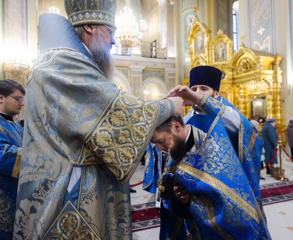 — клирик Ростовского кафедрального собора диакон Алексий Тысячник удостоен права ношения двойного ораря.