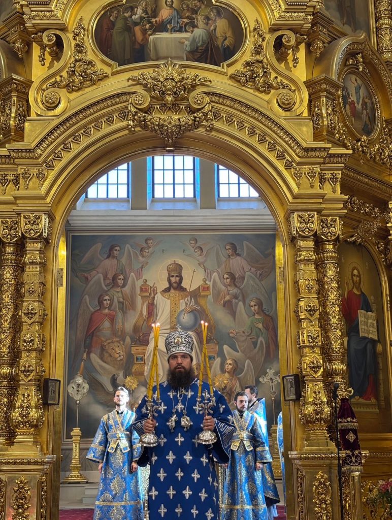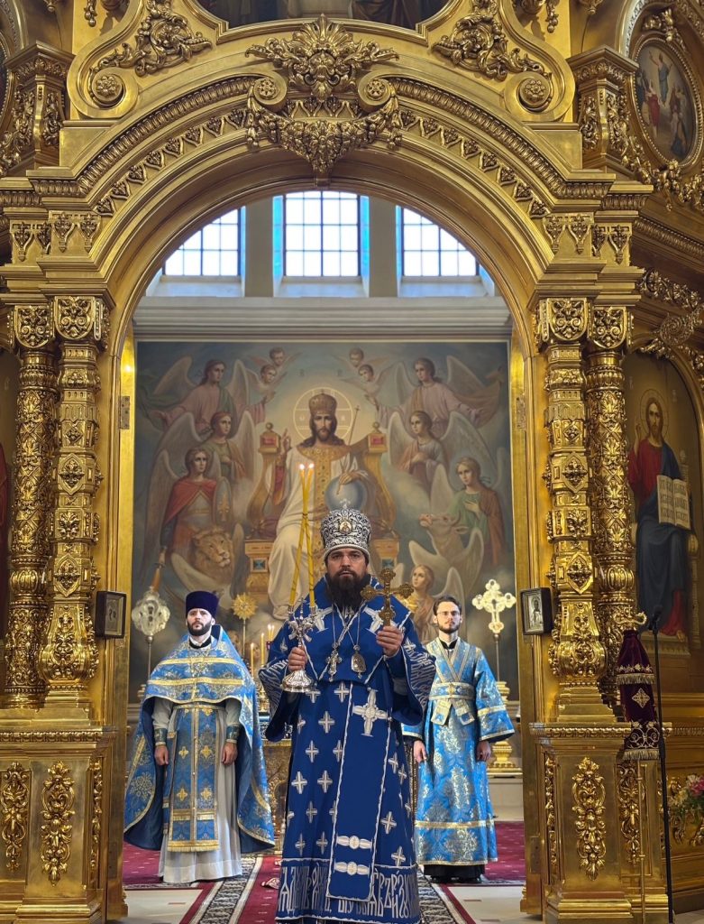 Его Преосвященству сослужили председатель приходского совета собора протоиерей Александр Брянцев, настоятель собора иерей Димитрий Болотаев и клирики собора.