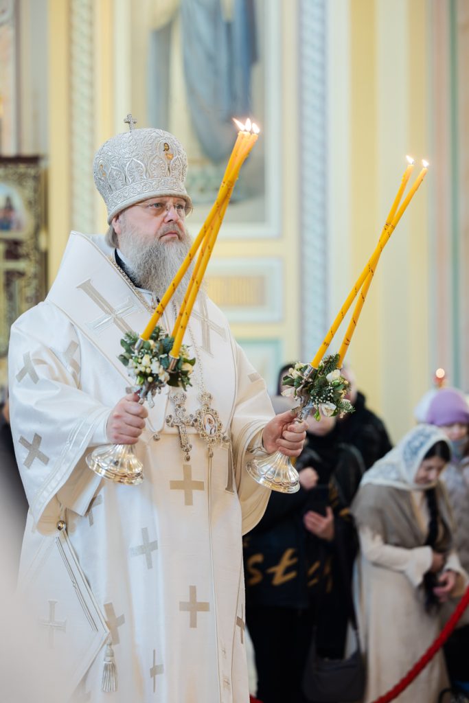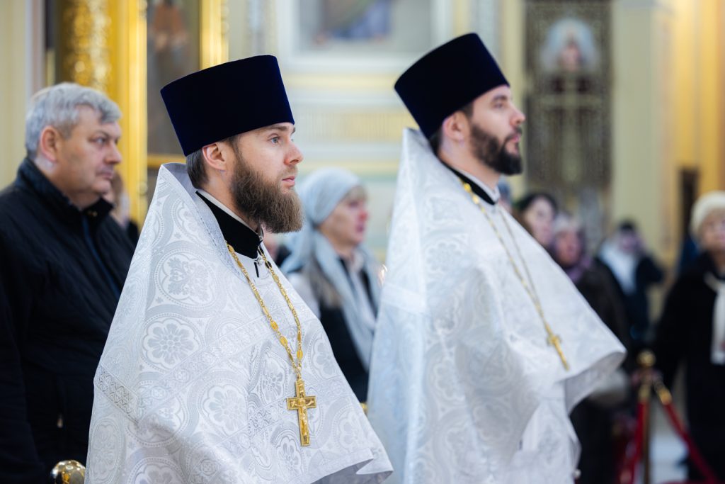 Его Высокопреосвященству сослужили настоятель собора иерей Димитрий Болотаев, иеромонах Рафаил (Митрофанов), личный секретарь Главы Донской митрополии иерей Сергий Грибов и клирики храма.