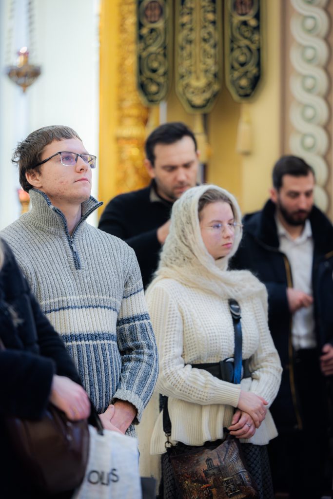 Песнопения богослужения исполнил хор собора под управлением протодиакона Владимира Зубрицкого. Проповедь перед Святым Причастием произнес иерей Димитрий Болотаев.