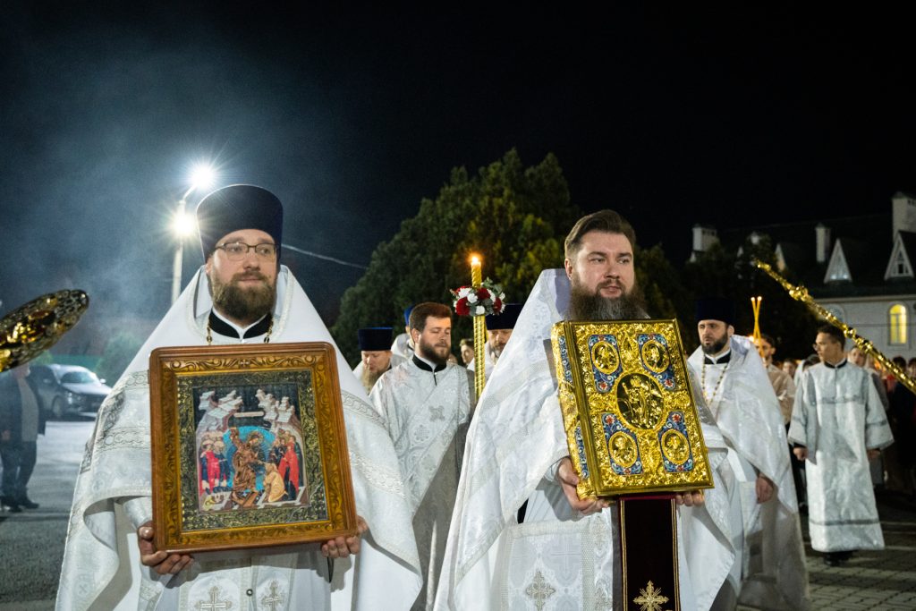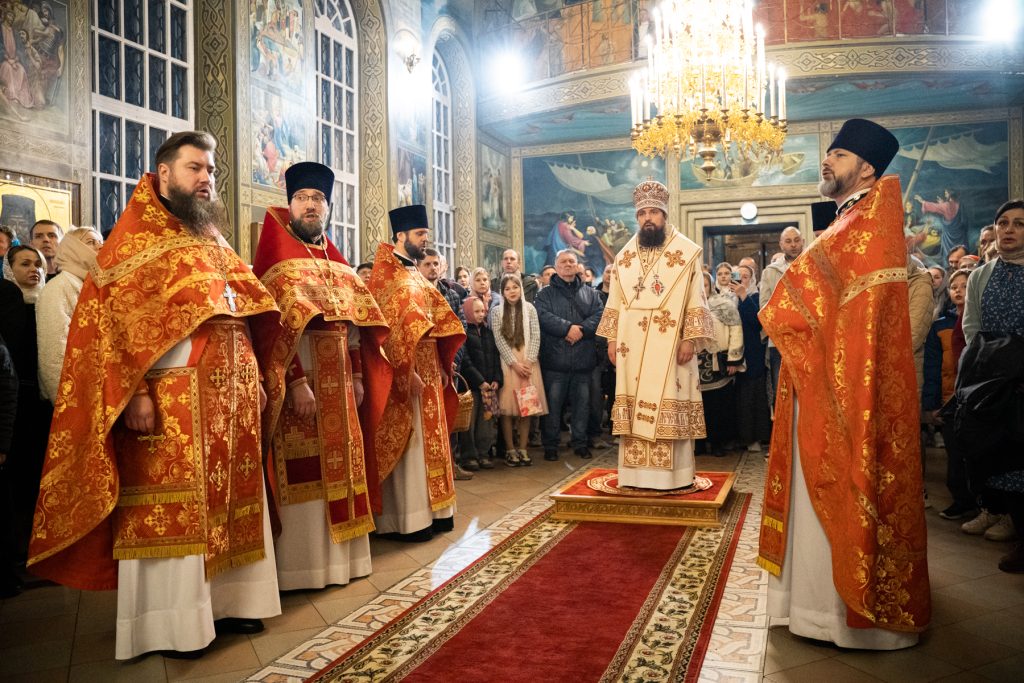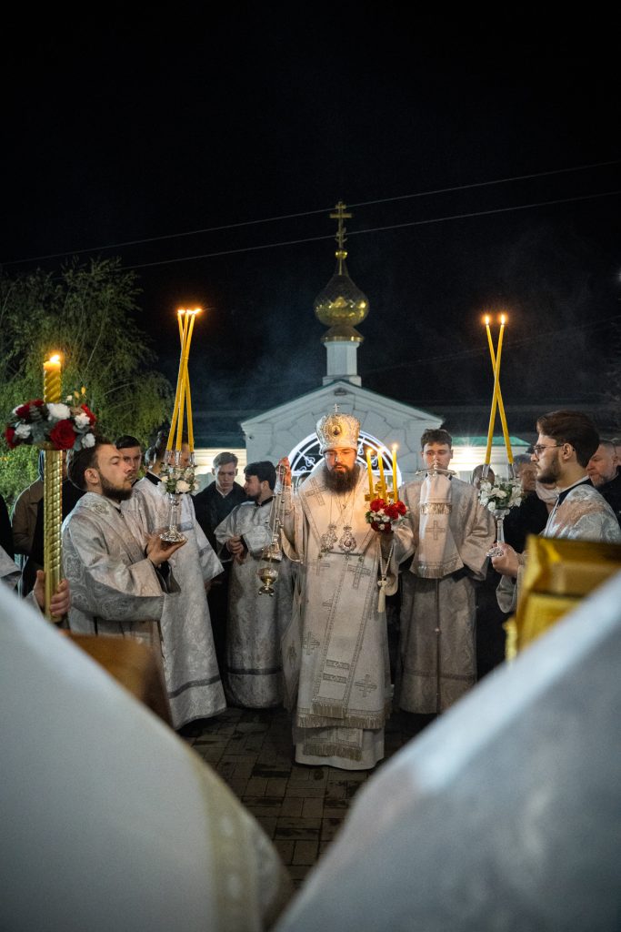В ночь с 11 по 12 апреля 2026 года, в праздник Светлого Христова Воскресения, викарий Ростовской епархии епископ Таганрогский Артемий совершил Пасхальные богослужения — полунощницу, крестный ход, Пасхальную утреню и Божественную литургию святителя Иоанна Златоуста в храме Преполовения Пятидесятницы при Донской духовной семинарии города Ростова-на-Дону.