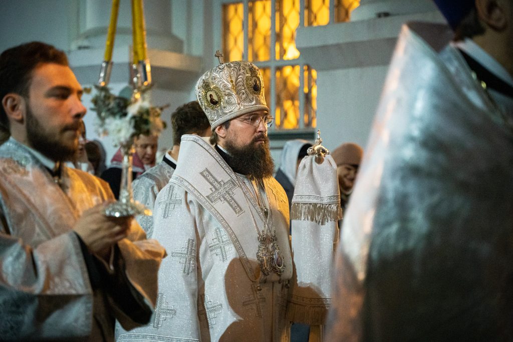 Его Преосвященству сослужили настоятель Преполовенского храма, проректор по воспитательной работе Донской духовной семинарии иерей Андрей Миронов, заведующий отделением магистратуры Донской духовной семинарии протоиерей Григорий Гриднев, проректор по учебной работе Донской духовной семинарии иерей Олег Малышев и клирики храма.