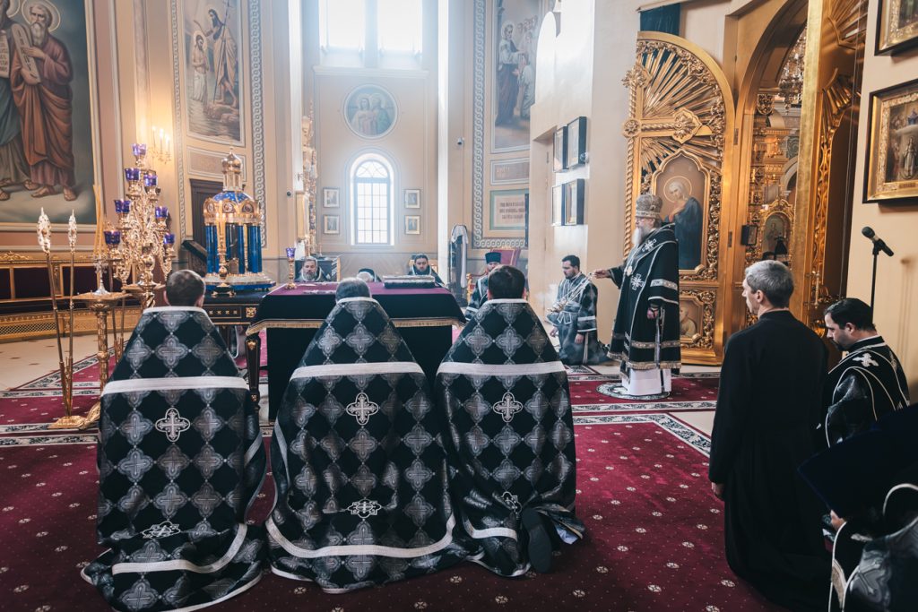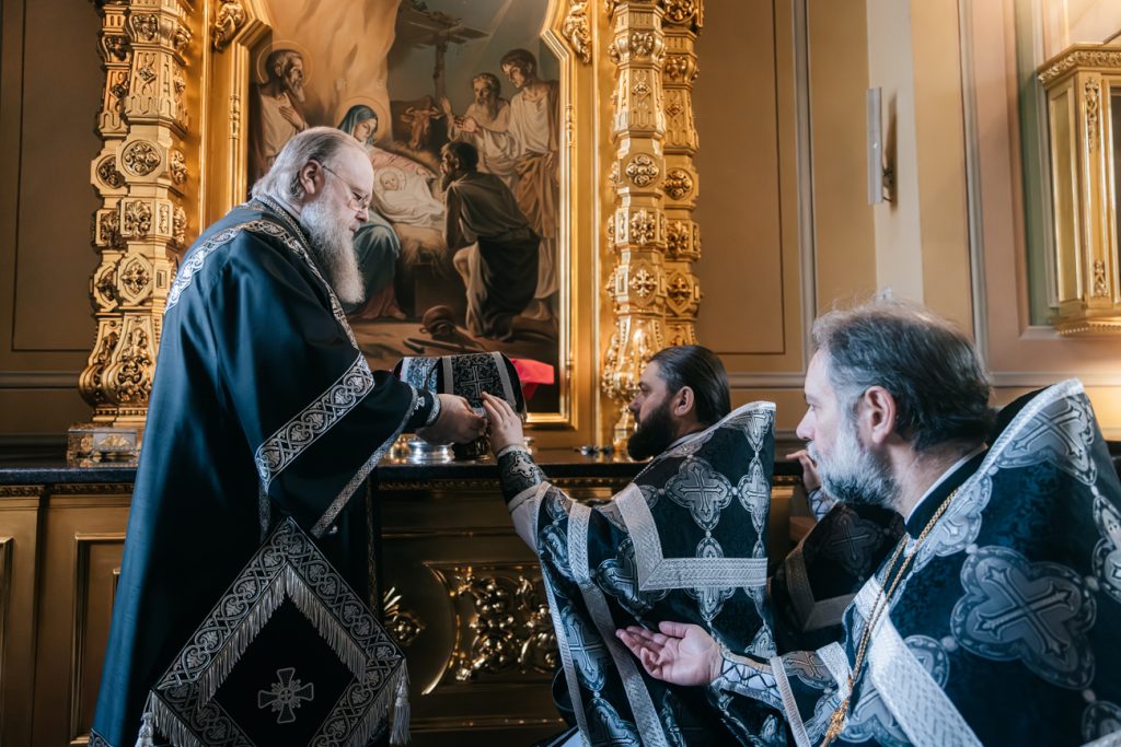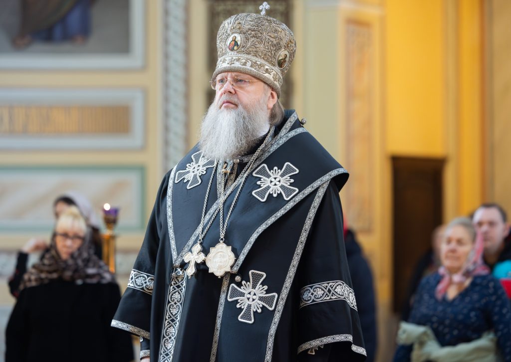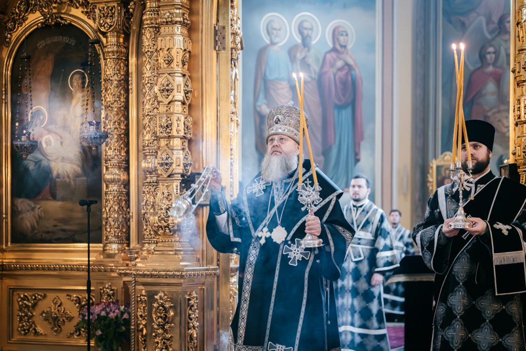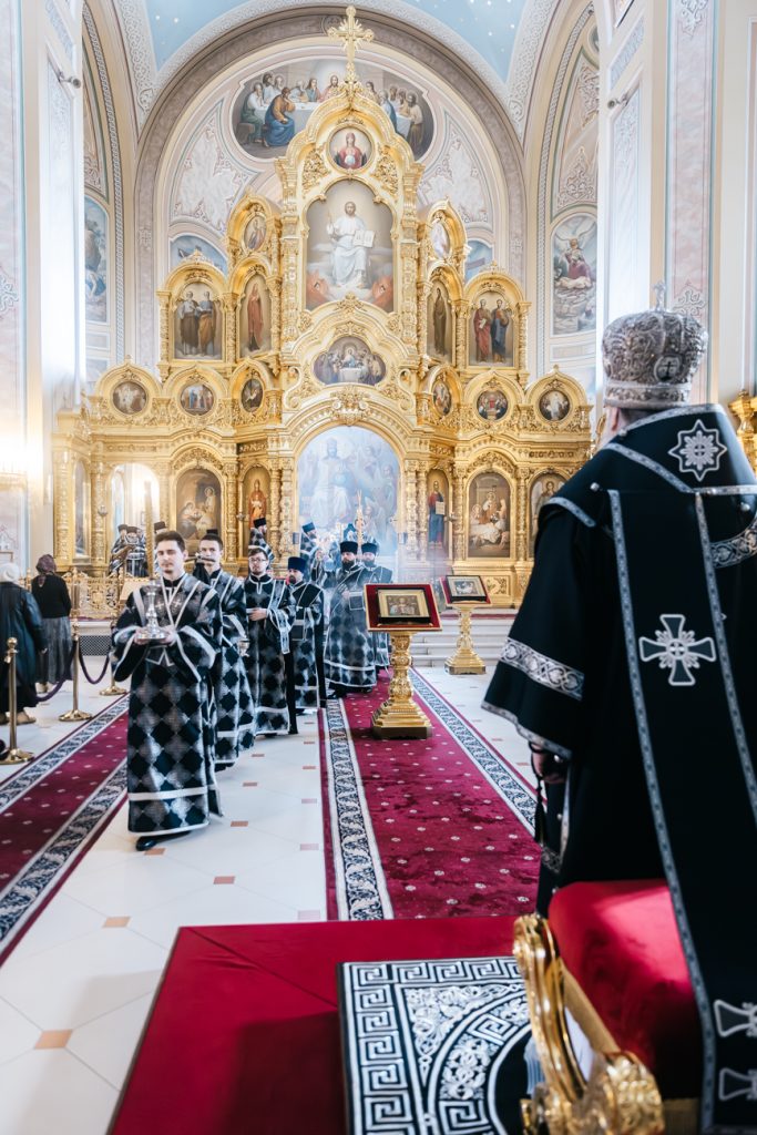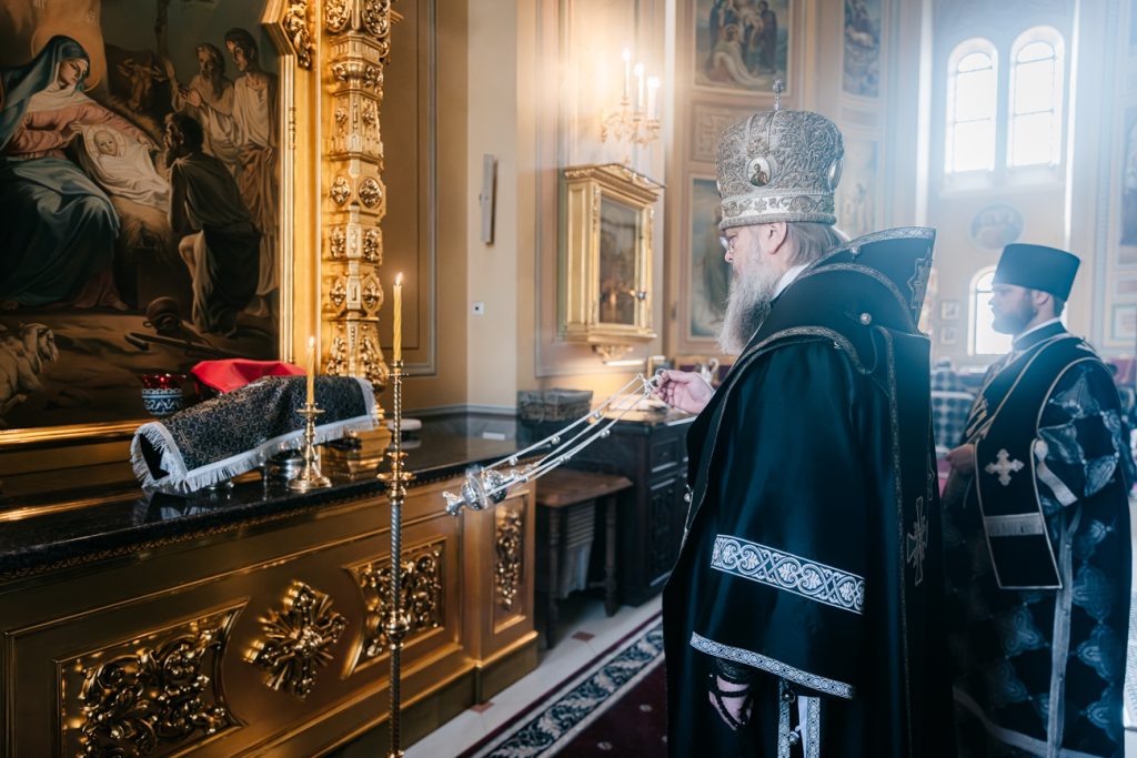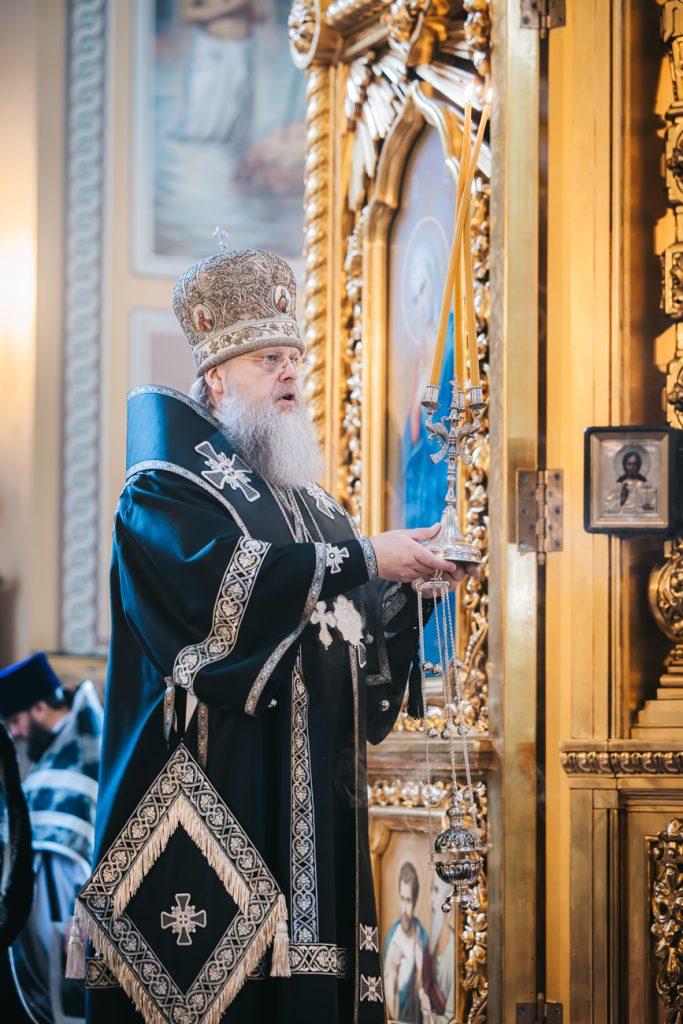 Его Высокопреосвященству сослужили председатель приходского совета собора протоиерей Александр Брянцев, настоятель собора иерей Димитрий Болотаев, духовник епархии протоиерей Николай Урывский и клирики собора.