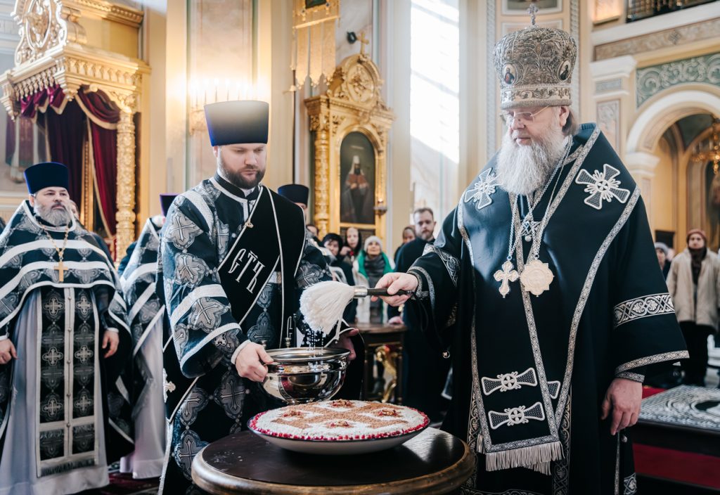 По окончании богослужения митрополит Ростовский и Новочеркасский Меркурий возглавил молебное пение святому великомученику Феодору Тирону и совершил чин освящения колива.