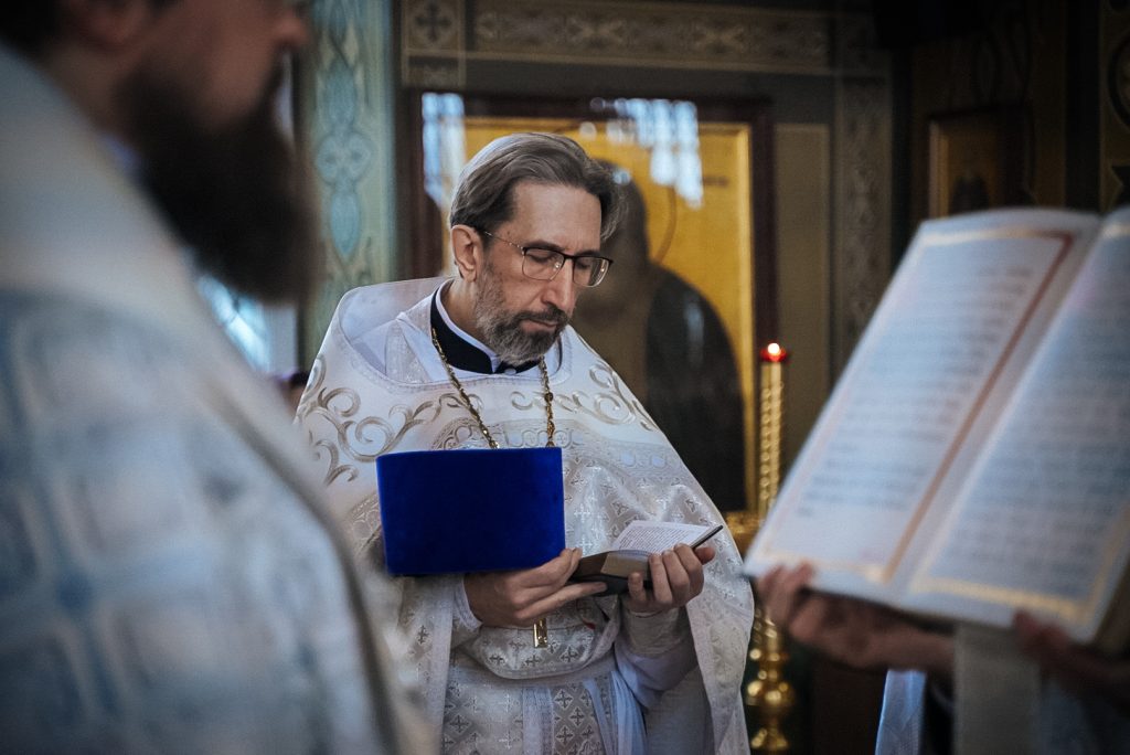 Его Преосвященству сослужили настоятель Преполовенского храма, проректор по воспитательной работе Донской духовной семинарии иерей Андрей Миронов, заведующий отделением магистратуры Донской духовной семинарии протоиерей Григорий Гриднев, заведующий регентско-певческим отделением Донской духовной семинарии иеромонах Аверкий (Шапошников) и клирики храма.