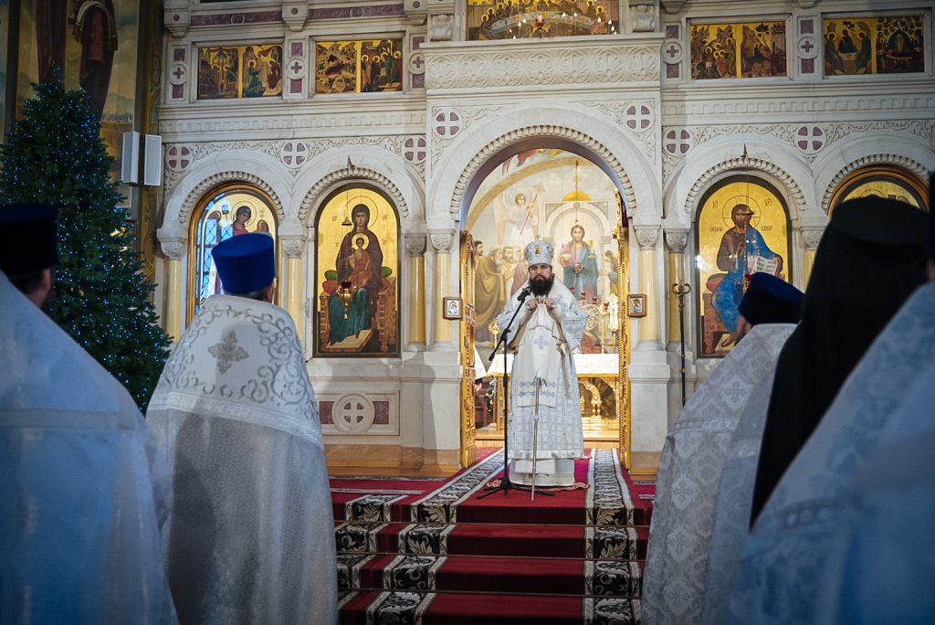 По окончании богослужения Его Преосвященство совершил чин славления Христа и освятил коливо. Затем обратился к молящимся с архипастырским словом, передав благословение митрополита Ростовского и Новочеркасского Меркурия.