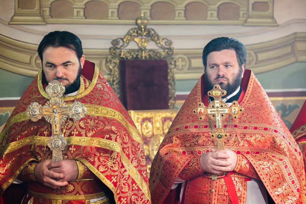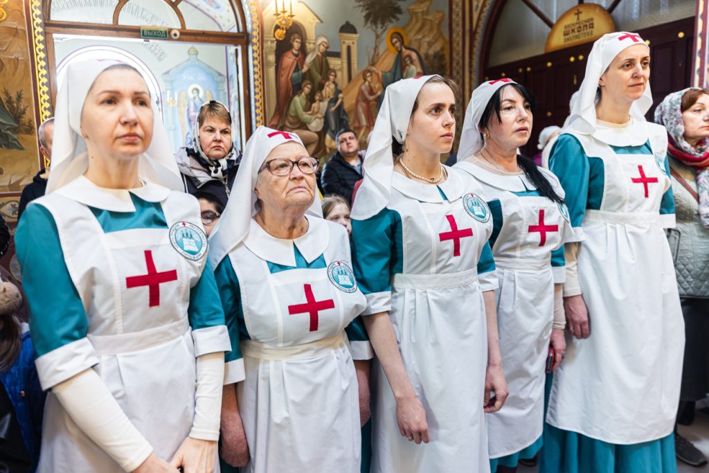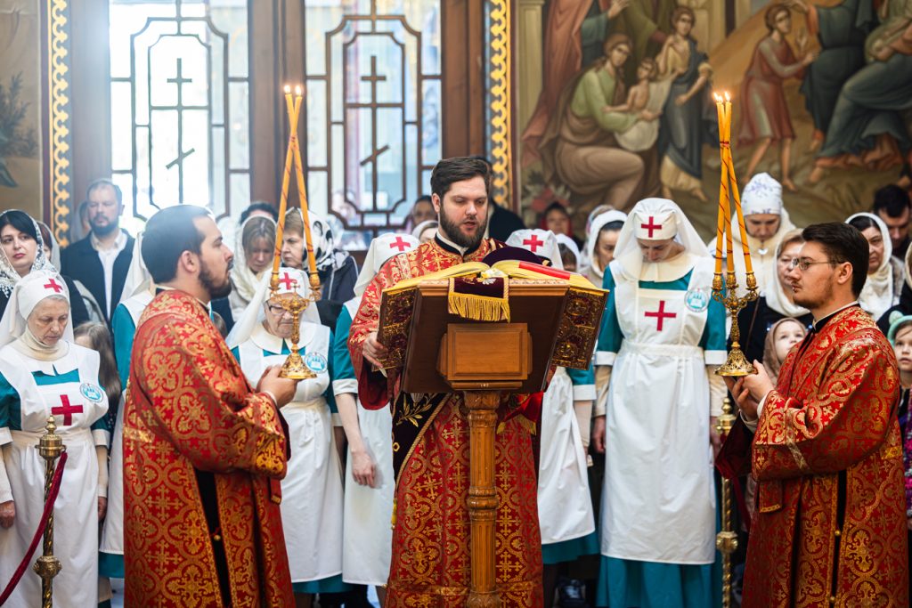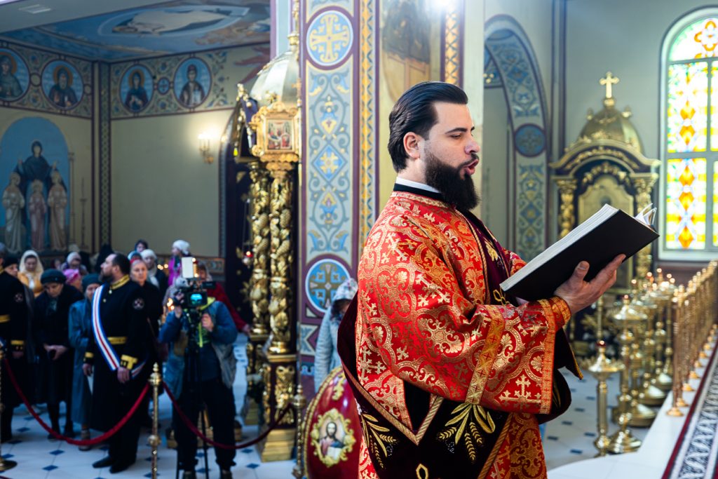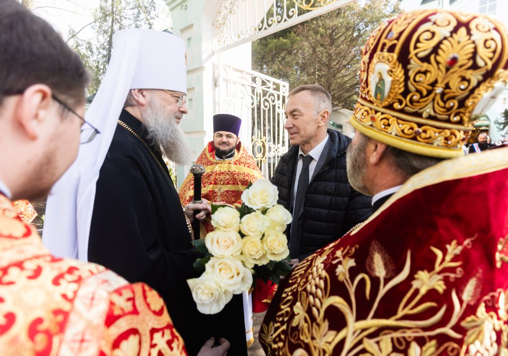 За Божественной литургией молились первый заместитель главы администрации Железнодорожного района Артур Хостов, представители Общества Хоругвеносцев, многочисленные прихожане и паломники.