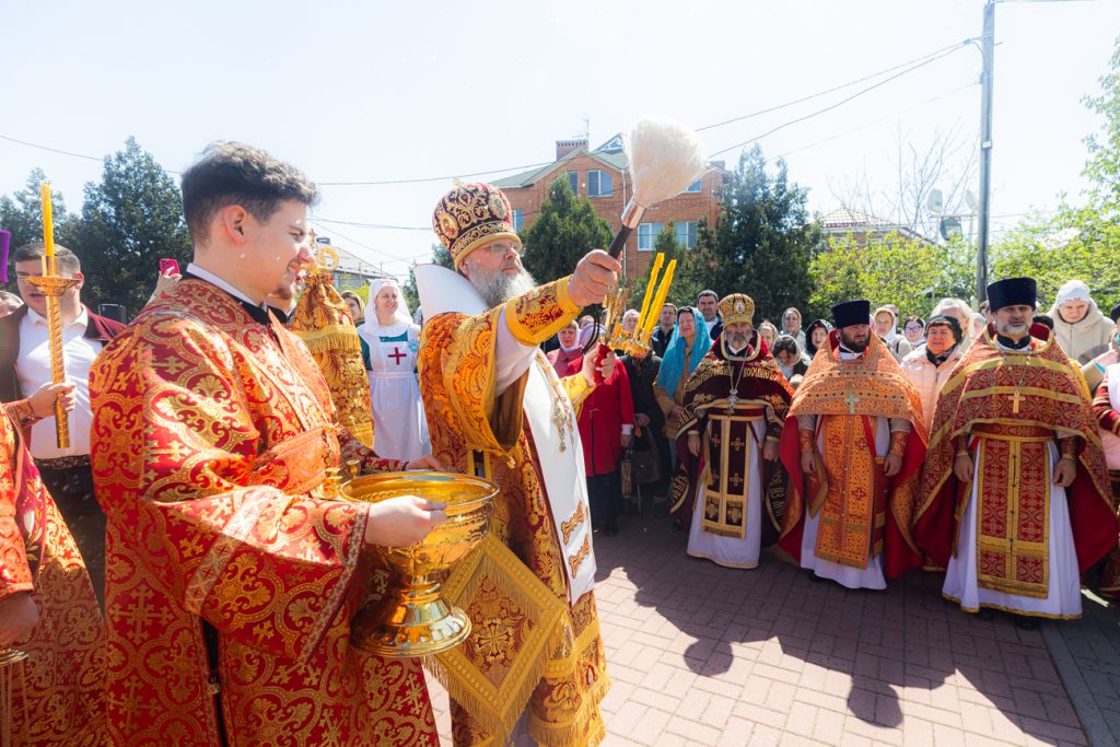 Его Высокопреосвященству сослужили благочинный Юго-Западного округа, настоятель храма протоиерей Иоанн Осяк, настоятель храма в честь иконы Божией Матери «Державная» города Ростова-на-Дону иерей Антоний Осяк, руководитель Епархиального отдела по церковной благотворительности и социальному служению иерей Евгений Осяк, руководитель Епархиального отдела по тюремному служению иерей Александр Кушнир, клирики епархии.