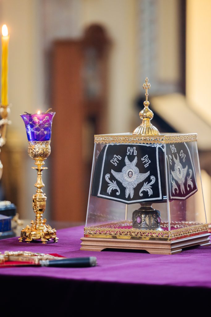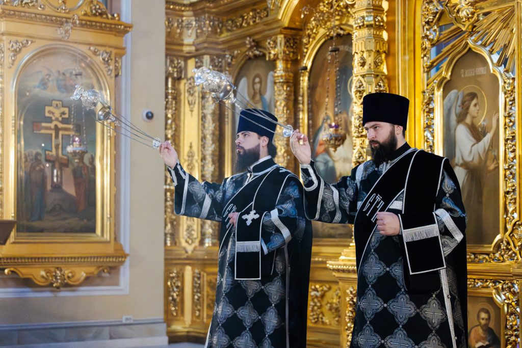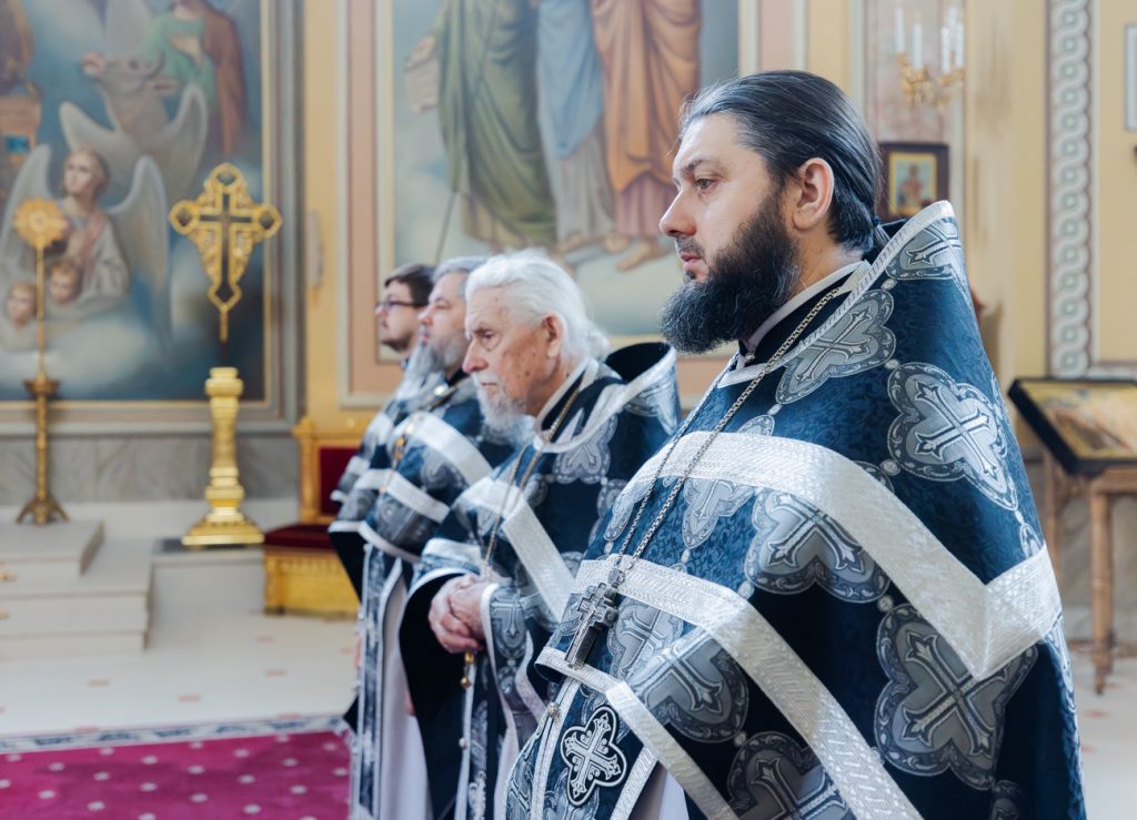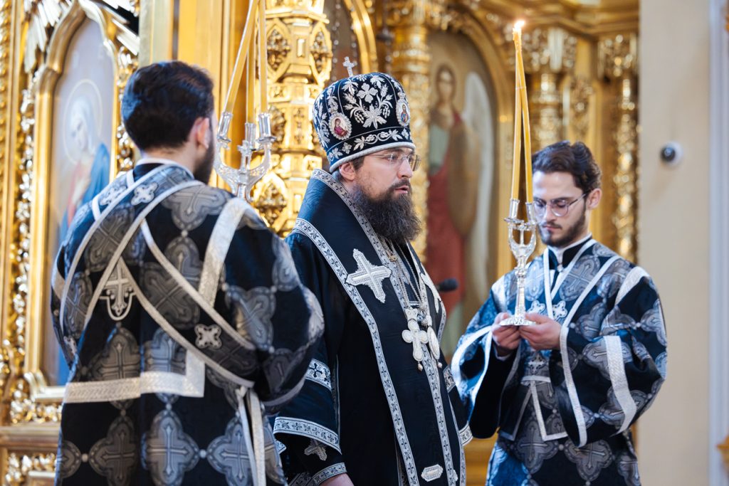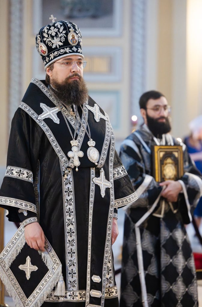 Его Преосвященству сослужили председатель приходского совета собора протоиерей Александр Брянцев, настоятель собора иерей Димитрий Болотаев, духовник епархии протоиерей Николай Урывский, а также духовенство собора.