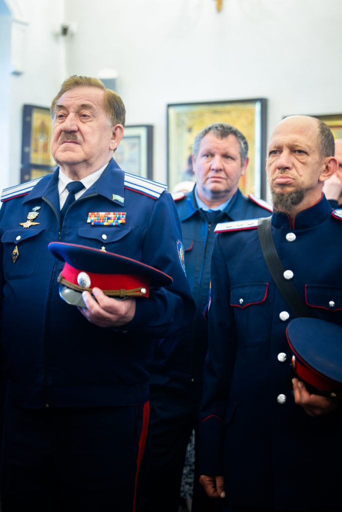 За богослужением молились советник атамана Войска Донского казачий полковник Владимир Кривенко, секретарь Епархиального управления Ростовской-на-Дону епархии иерей Димитрий Болотаев, прихожане и паломники.