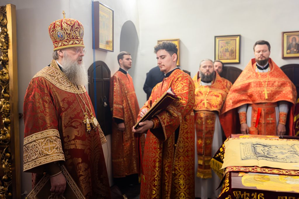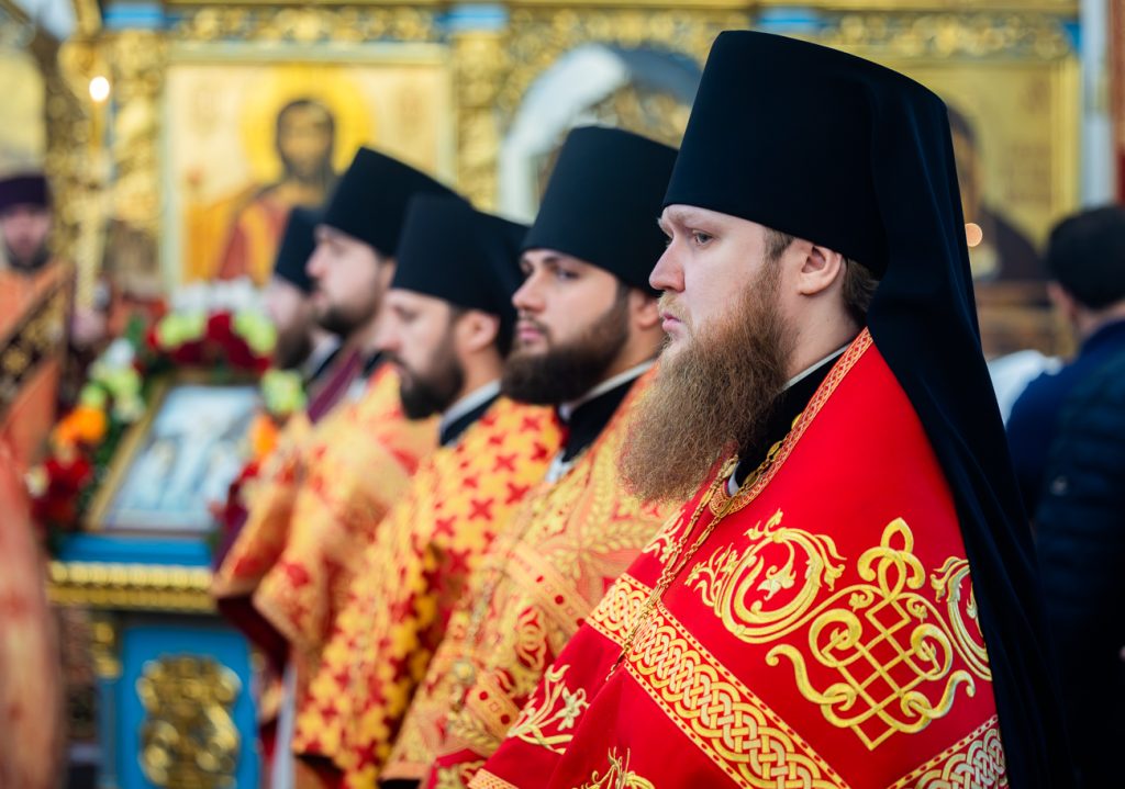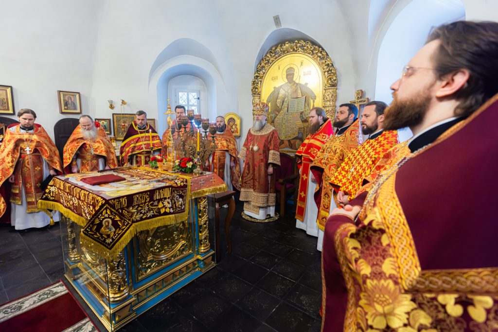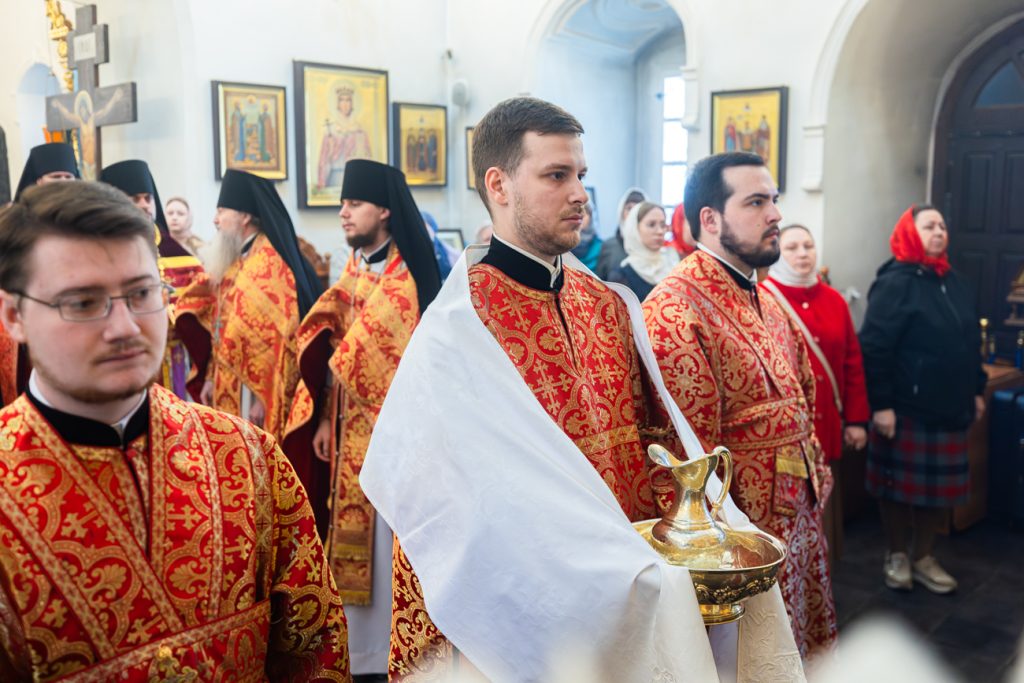 Его Высокопреосвященству сослужили наместник Донского Старочеркасского Ефремовского мужского монастыря игумен Сергий (Коломиц), благочинный монастыря иеромонах Никон (Сандульский), благочинный Азовского городского округа иеромонах Амвросий (Плахотный), а также монашествующие клирики епархии в священном сане.