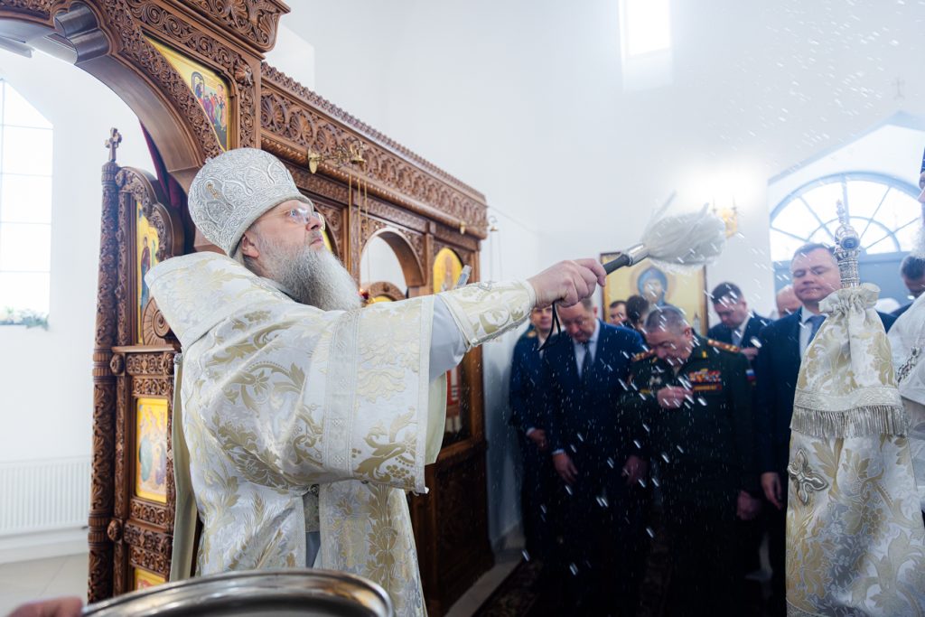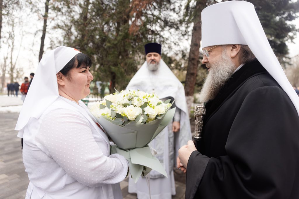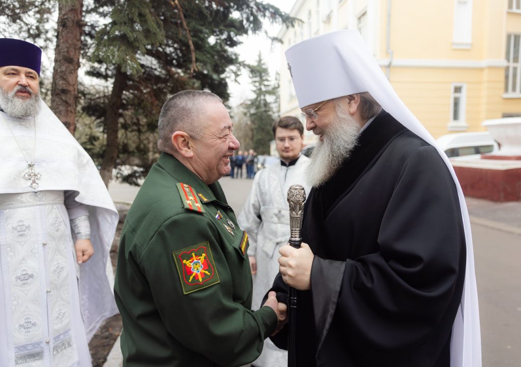 Его Высокопреосвященству сослужили руководитель Епархиального отдела по взаимодействию с Вооруженными Силами и правоохранительными учреждениями, помощник командующего войсками Южного военного округа по работе с верующими военнослужащими протоиерей Валерий Волощук, секретарь Епархиального управления Ростовской-на-Дону епархии иерей Димитрий Болотаев, руководитель Епархиального отдела по церковной благотворительности и социальному служению иерей Евгений Осяк, помощник начальника 1602-го окружного военного госпиталя по работе с верующими военнослужащими, настоятель госпитального храма святителя Луки иерей Димитрий Мягков.