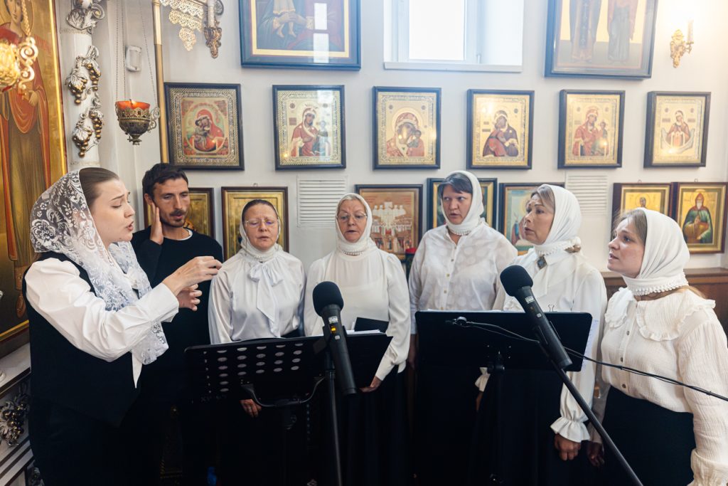 Песнопения богослужения исполнили хор храма под управлением регента Марии Макаренко, детский приходской хор под управлением Ольги Коноваловой, а также любительский хор под руководством регента Кристины Скопинцевой. Проповедь перед Причастием произнес клирик храма иерей Даниил Бочаров.
