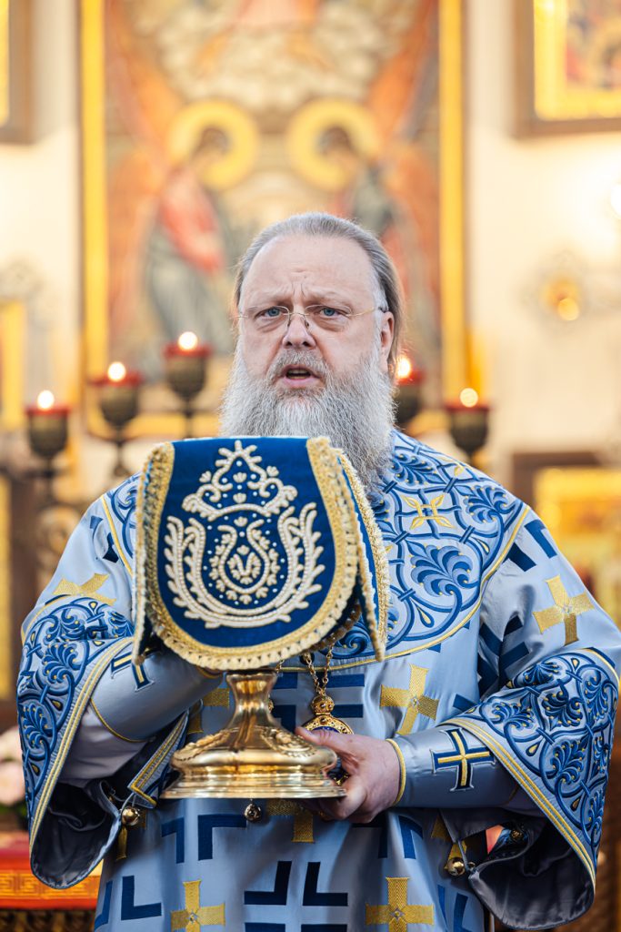 В престольный день Его Высокопреосвященству сослужили настоятель прихода протоиерей Константин Макаренко, клирик храма протоиерей Николай Нетребский, секретарь Главы Донской митрополии иерей Сергий Грибов, клирики епархии.