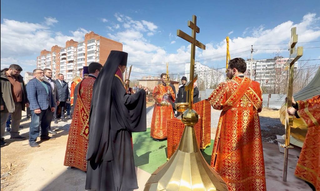 16 апреля 2026 года епископ Таганрогский Артемий викарий Ростовской епархии совершил чин на поставление креста на колокольню Свято-Троицкого прихода города Таганрога.