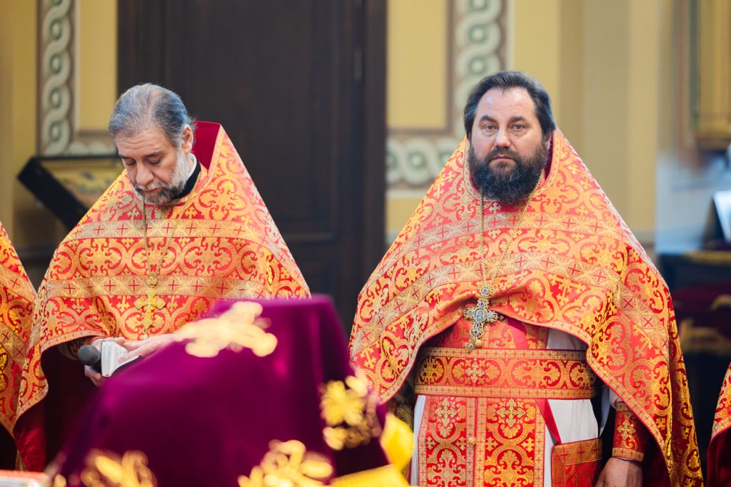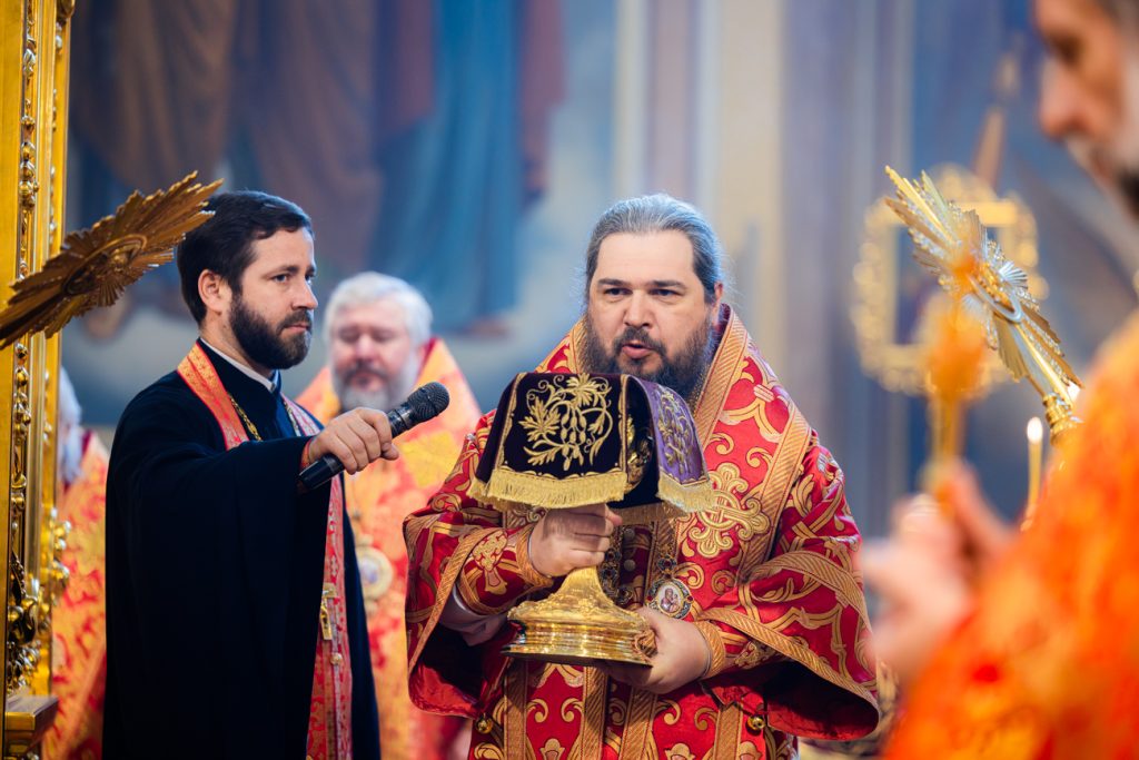 Песнопения богослужения исполнил хор собора под управлением Тараса Лямкина. Проповедь перед Святым Причастием произнес иерей Димитрий Болотаев.