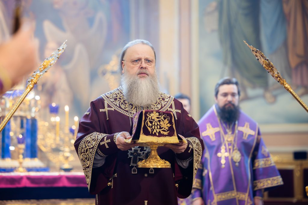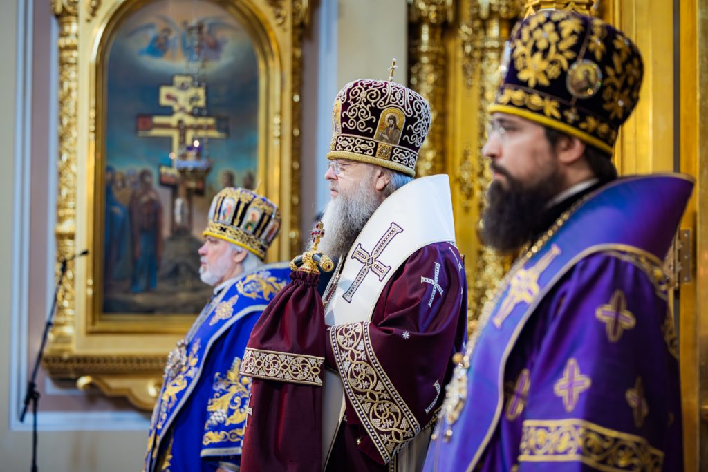 Его Высокопреосвященству сослужили викарий Ростовской епархии епископ Таганрогский Артемий, епископ Пармен (Щипелев), председатель приходского совета собора протоиерей Александр Брянцев, настоятель собора иерей Димитрий Болотаев, руководитель Отдела по взаимоотношениям Церкви с обществом и СМИ Ростовской-на-Дону епархии протоиерей Даниил Азизов и клирики епархии.