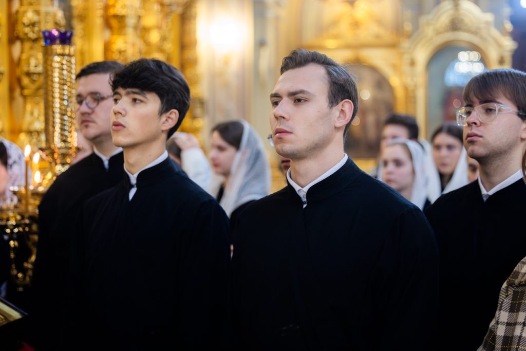 Песнопения богослужения исполнил хор собора под управлением протодиакона Владимира Зубрицкого. Проповедь перед Святым Причастием произнес клирик собора иерей Иоанн Золотавин.