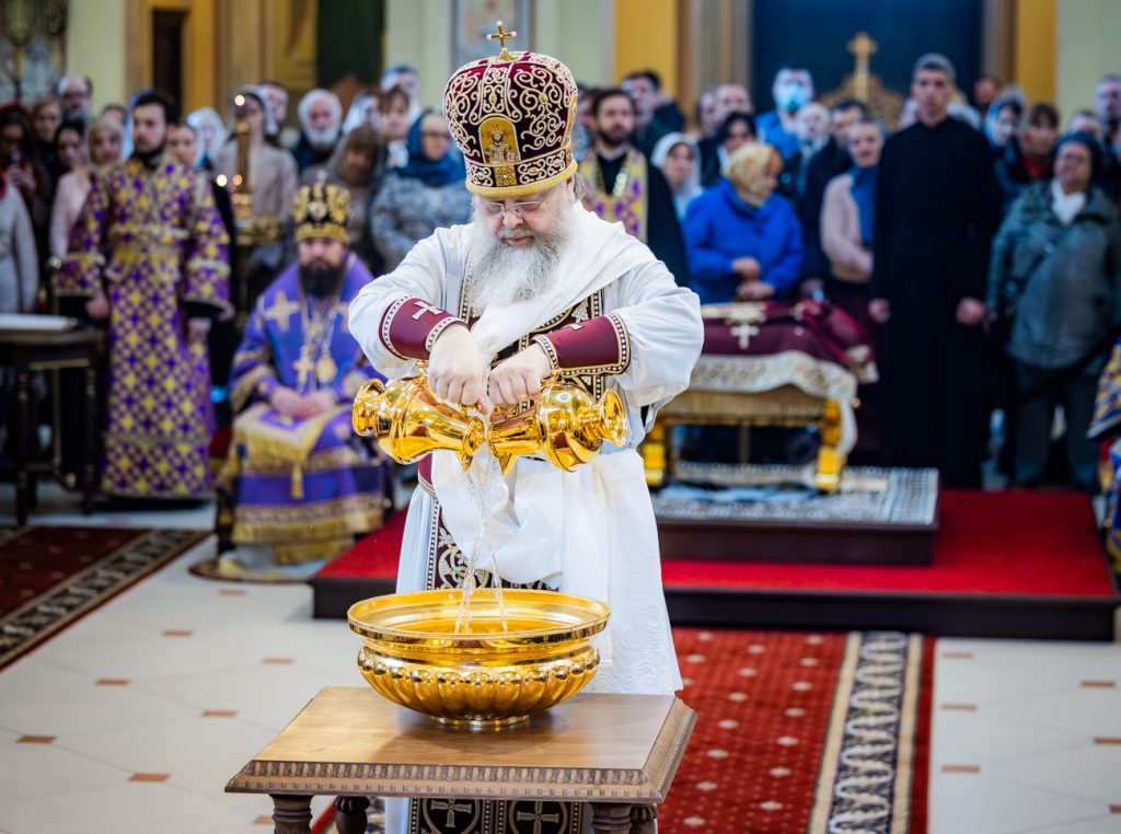 После совершения чина умовения ног владыка митрополит поздравил паству с Великим Четвергом – днем установления святого Таинства Евхаристии – и обратился к молящимся с архипастырским словом, в котором отметил: