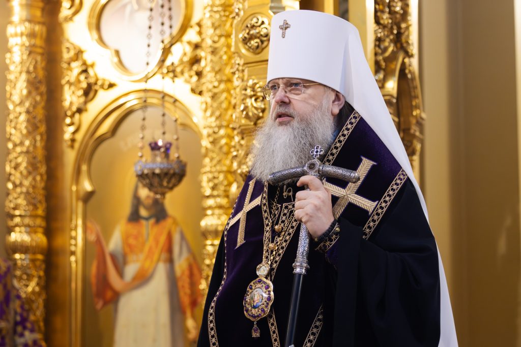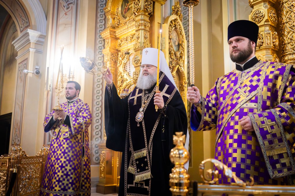Его Высокопреосвященству сослужили председатель приходского совета собора протоиерей Александр Брянцев, настоятель собора иерей Димитрий Болотаев.