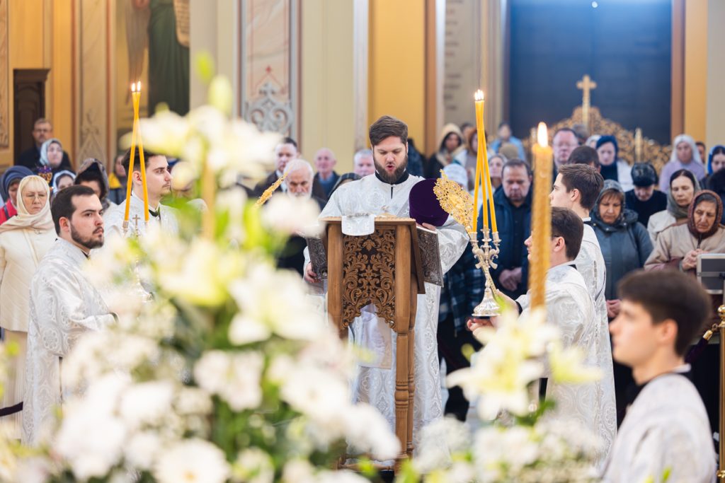 Песнопения богослужения исполнил хор собора под управлением протодиакона Владимира Зубрицкого. Проповедь перед Святым Причастием произнес клирик храма иерей Александр Слабодин.