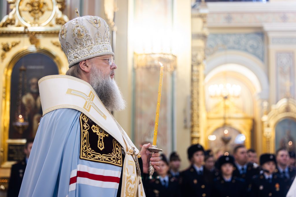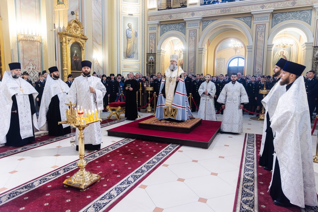 «Сегодня мы собрались в соборном храме, чтобы молитвенно почтить память всех, кто отдал жизнь при исполнении служебного долга или в бою за Отечество. Из Священного Писания мы знаем: «Нет больше той любви, аще кто положит душу свою за други своя» (Ин., 15:13). Этот подвиг дается не каждому. Осознание того, что, приступая к службе, вы можете быть призваны к исполнению этого святого долга, делает вас людьми, которыми вправе гордиться наше Отечество — людьми, достойными всеобщего уважения и признательности. Мы обязаны хранить память о тех, кто исполнил свой долг до конца, защищая границы и рубежи Родины, как внутренние, так и внешние».