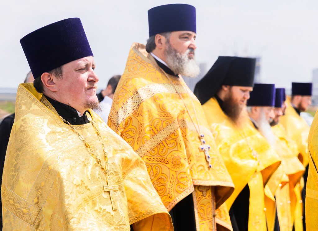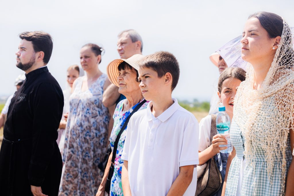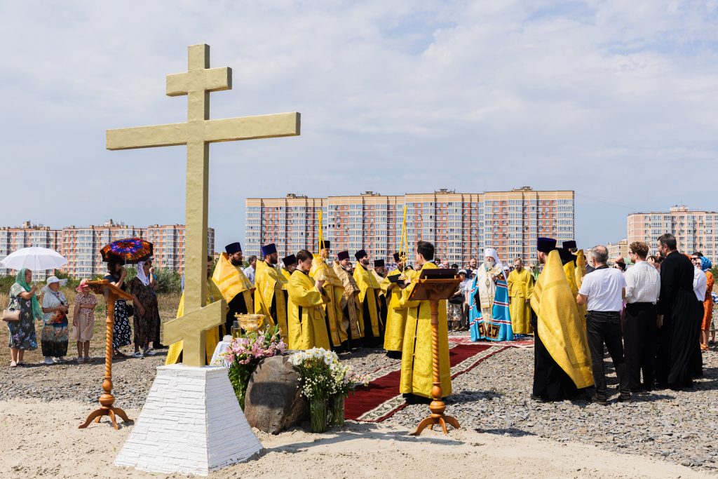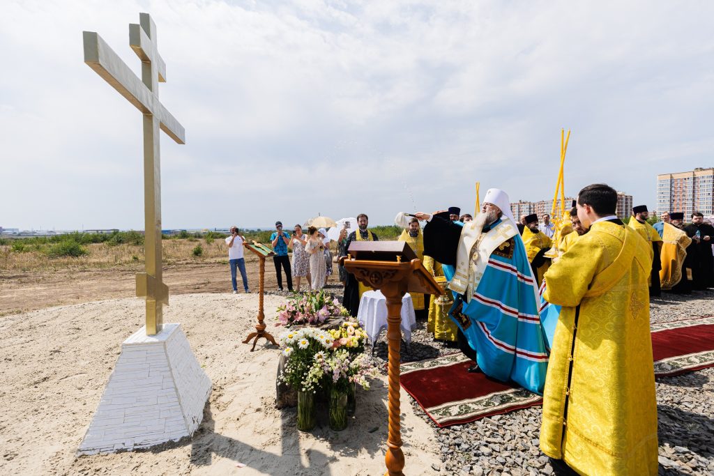 За богослужением молились глава Советского района города Ростова-на-Дону Никита Паремузов и прихожане строящегося храма.