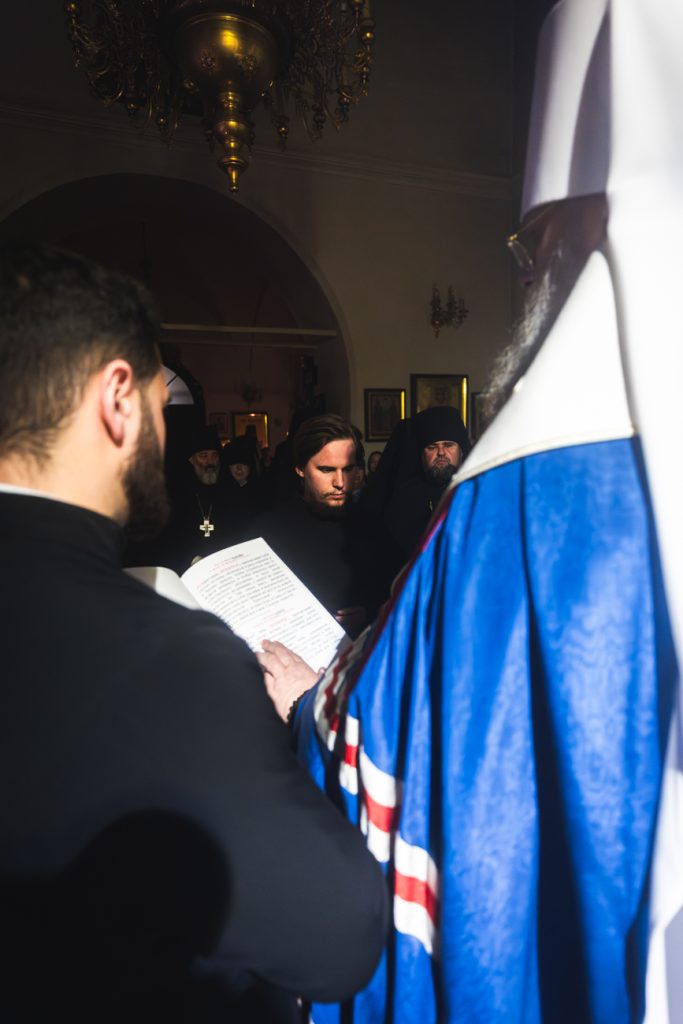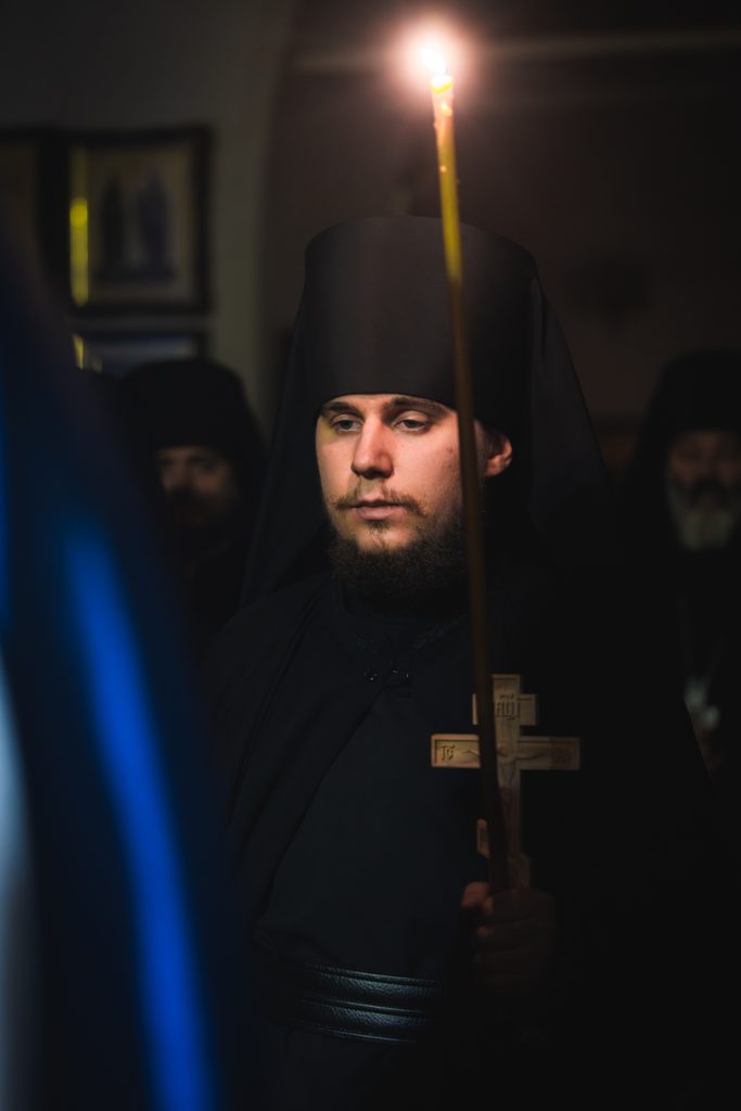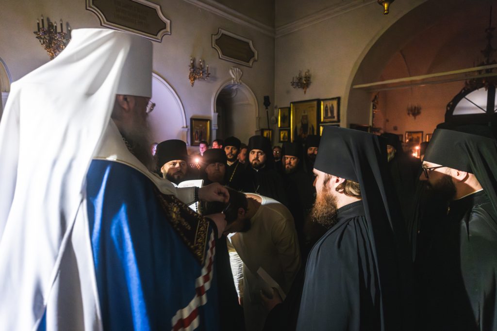 Его Высокопреосвященство постриг в малую схиму (мантию) выпускника магистратуры Московской духовной академии Павла Тарасенко с наречением имени Корнилий в честь преподобномученика Корнилия Псково-Печерского.