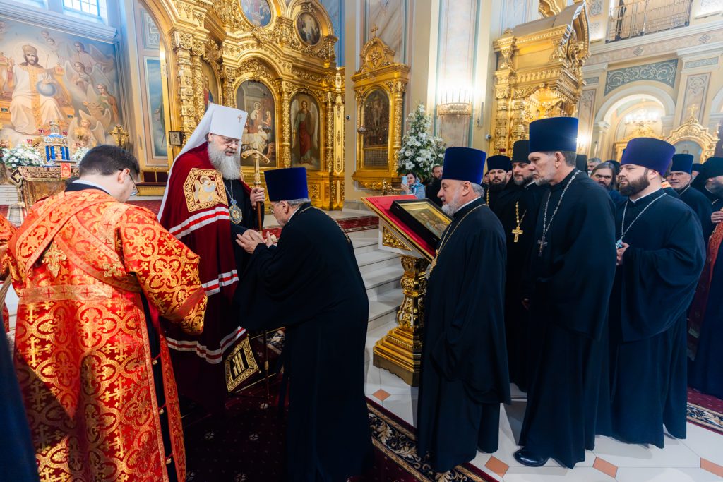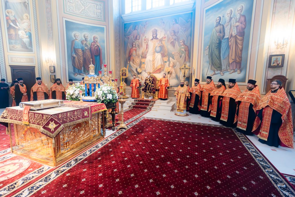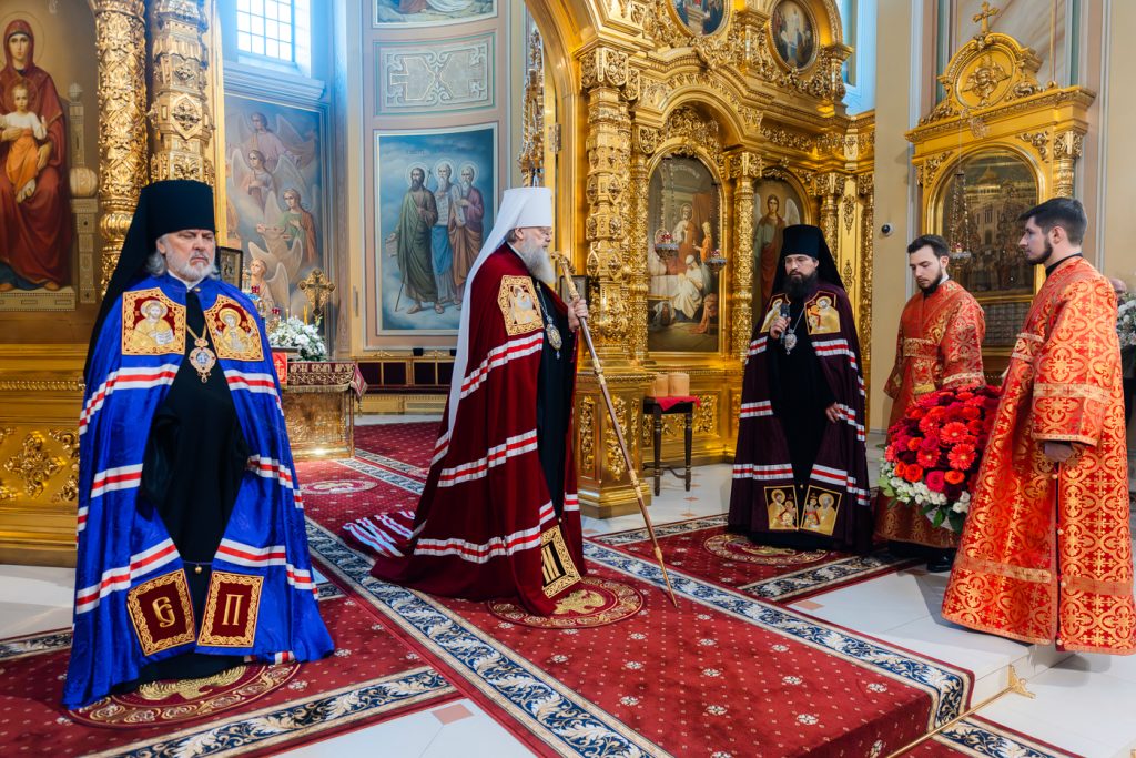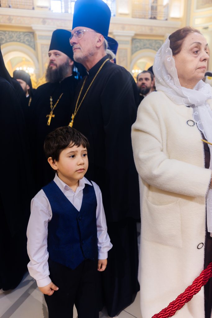 Его Высокопреосвященству сослужили викарий Ростовской епархии епископ Таганрогский Артемий, епископ Пармен (Щипелев), секретарь митрополита Ростовского и Новочеркасского по городу Ростову-на-Дону протоиерей Иоанн Осяк, председатель приходского совета собора протоиерей Александр Брянцев, члены Епархиального совета, наместник Донского Старочеркасского Ефремовского мужского монастыря, благочинные округов Ростовской-на-Дону епархии, клирики собора.