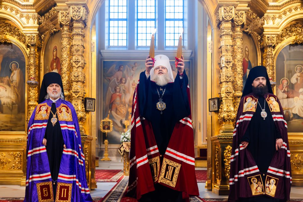 В конце Пасхальной вечерни митрополит Меркурий передал верующим Благодатный огонь, доставленный из Иерусалима.