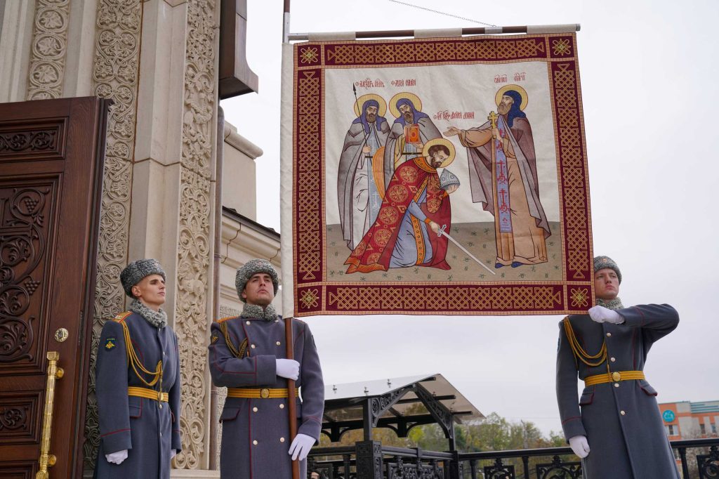 «Пусть этот образ хранит наши Вооруженные силы, а военнослужащим дает возможность, обращаясь к этому образу, просить у Господа помощи в несении ратного подвига, — сказал Святейший Владыка, передавая икону. — Пусть Господь хранит Вооруженные силы России и этот замечательный, исполненный героизма казачий край. С праздником еще раз поздравляю вас!»