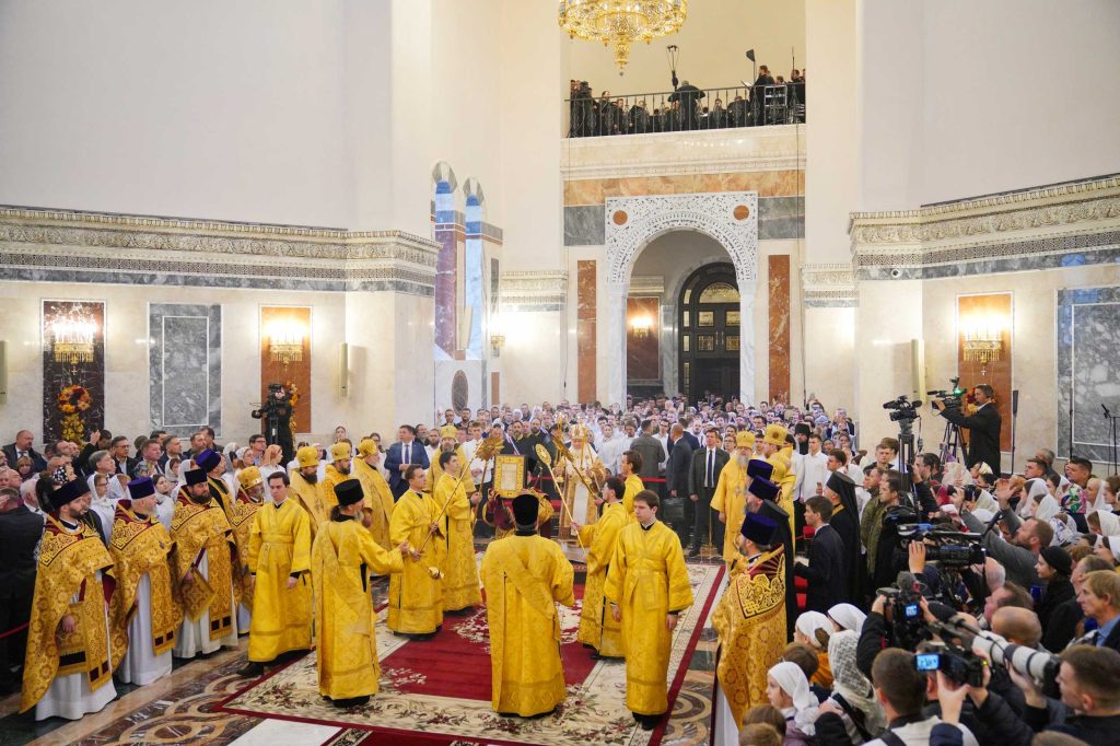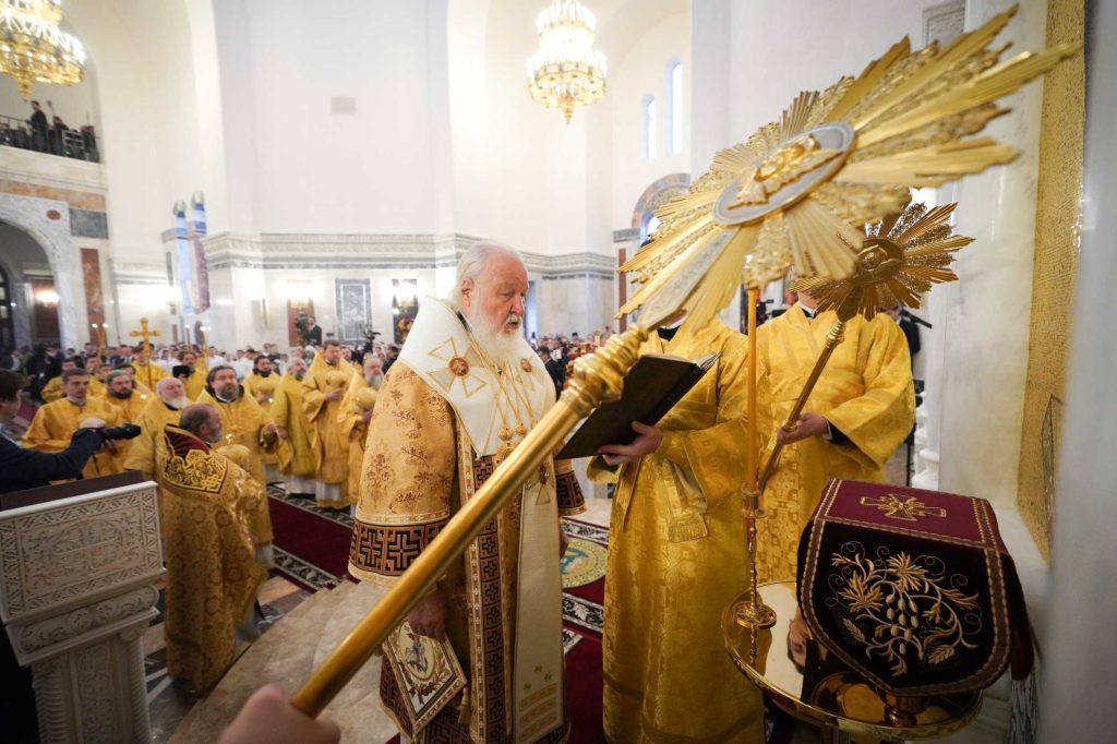 На сугубой ектении были вознесены особые прошения, Предстоятель Русской Церкви прочитал молитву о Святой Руси.