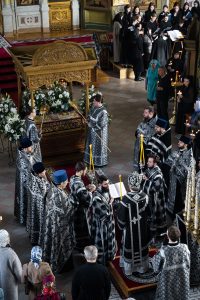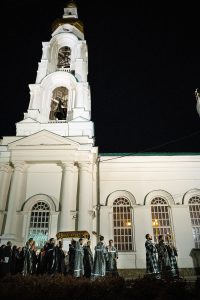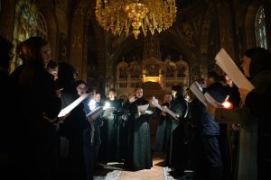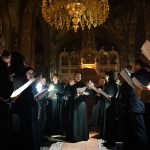 После пения тропарей на «Бог Господь» были прочитали перед Плащаницей Спасителя «Непорочны» – стихи 17-й кафизмы, с краткими песнопениями или «похвалами».